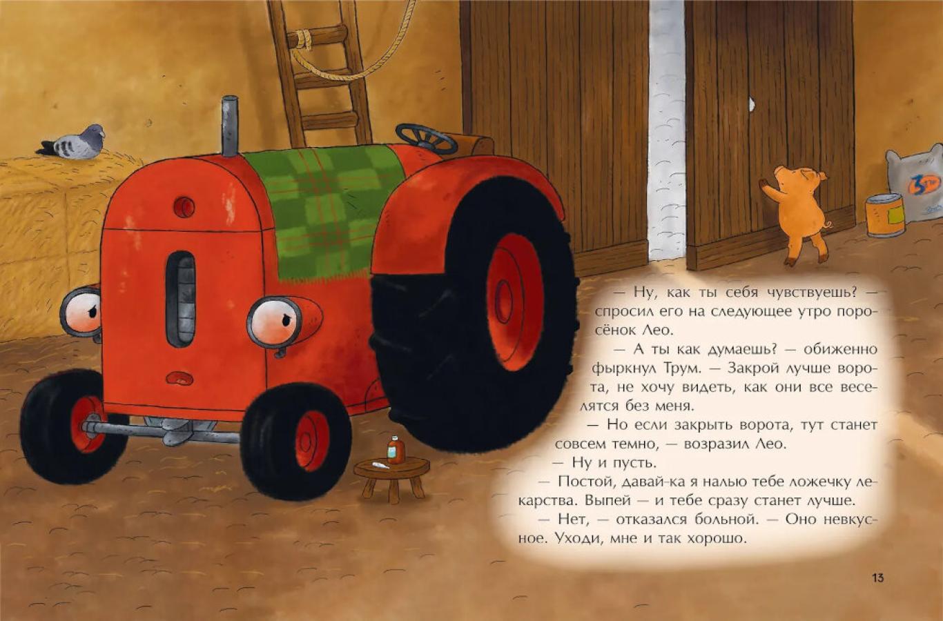 Добрая и увлекательная сказка о приключениях маленького красного Трактора и его друзей! Истории о понимании, взаимовыручке и настоящем счастье покорили сердца тысяч малышей. Когда маленький Трактор Трум заболевает, ему кажется, что мир про него забыл. Но в этой трогательной и поучительной истории герой осознаёт: настоящие друзья не оставят в беде. Этот рассказ - о заботе, терпении и дружбе, которая лечит не хуже любого лекарства. А выздоравливать всегда легче, если есть, на кого положиться!