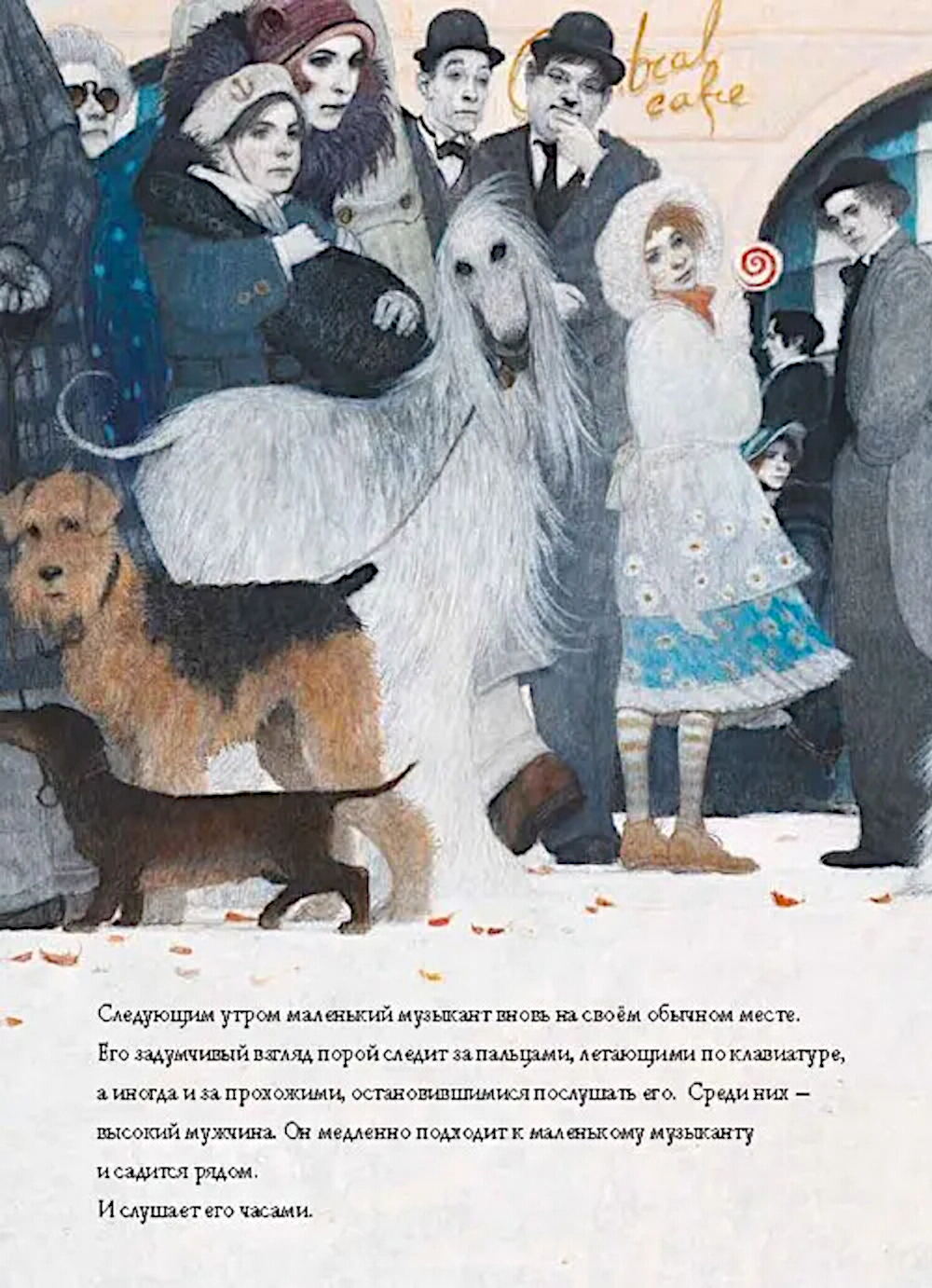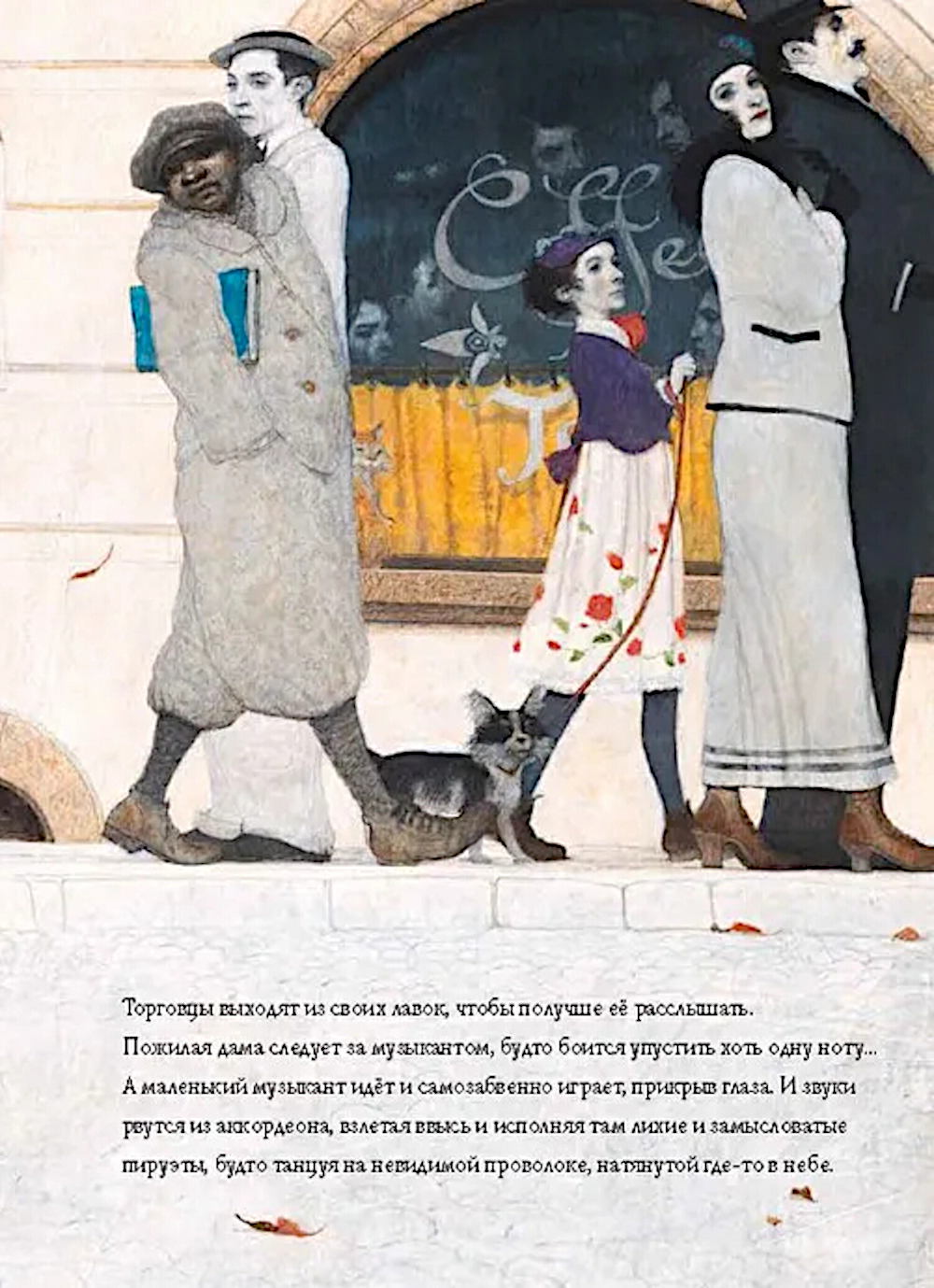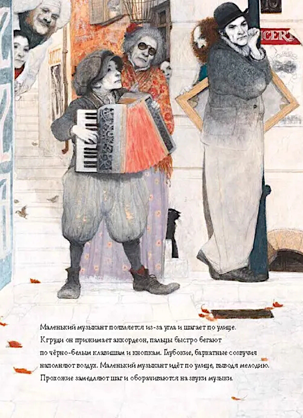 Ничто не должно мешать большому музыканту сочинять настоящую, серьёзную музыку! Особенно маленький уличный музыкант с аккордеоном, который играет у него под окнами. Но что, если мелодия бродячего музыканта, летящая прямо в небеса, сумеет коснуться слуха большого музыканта и тронуть его сердце? Тогда может произойти нечто неожиданное... Эта книга - о волшебной силе искусства.| Издательство | Лорета |