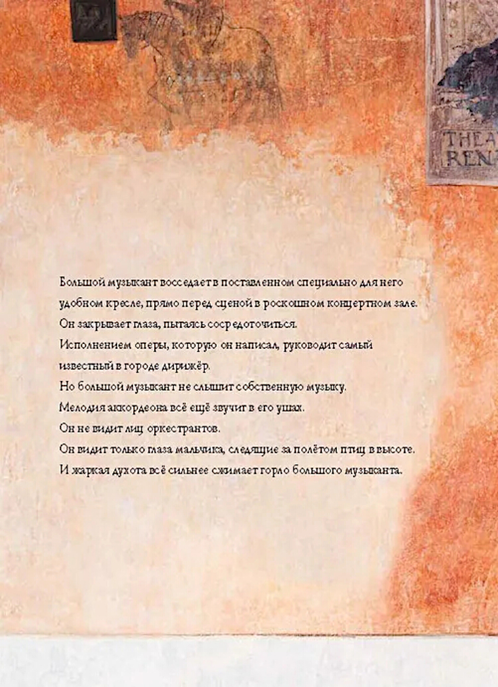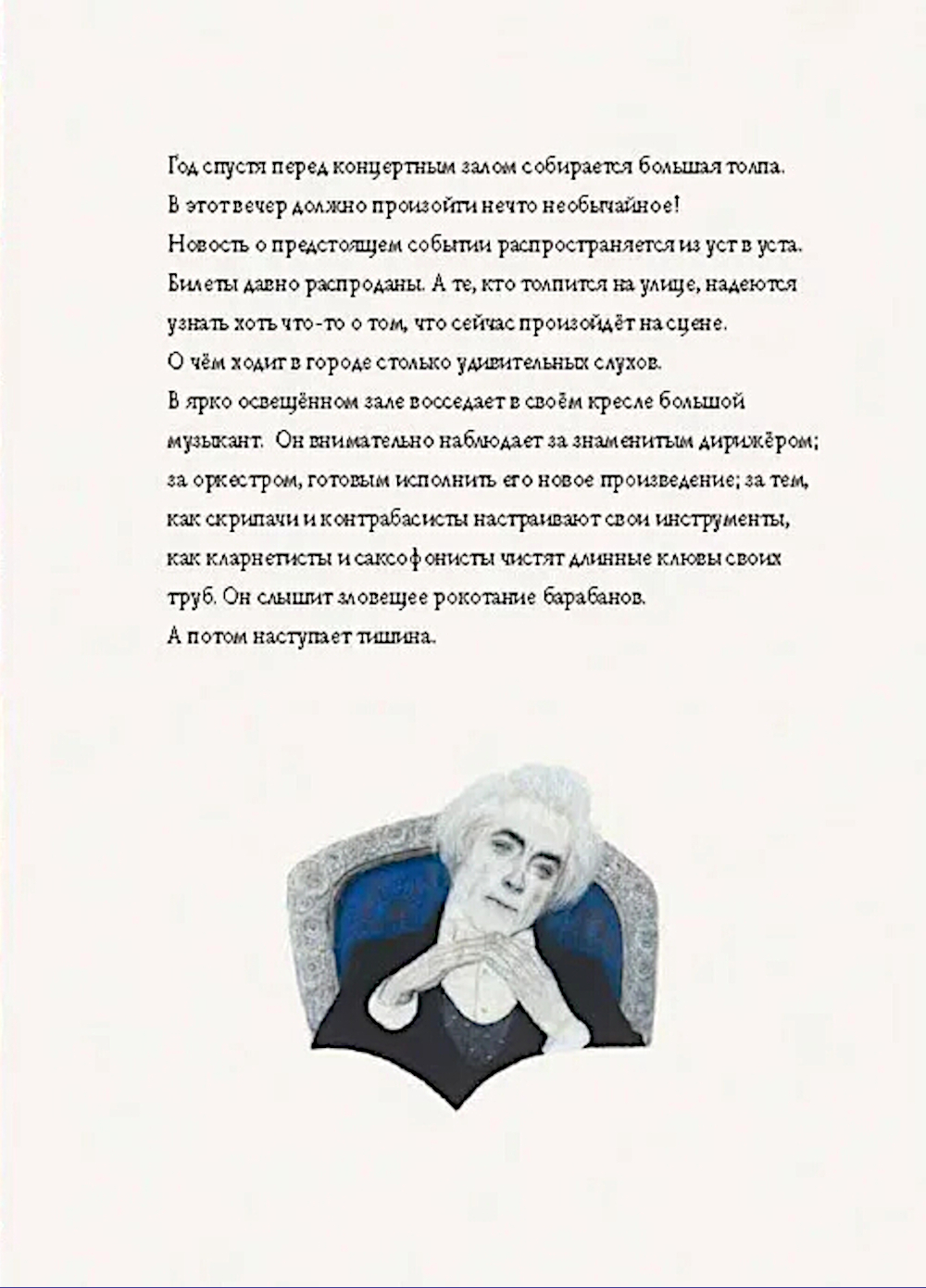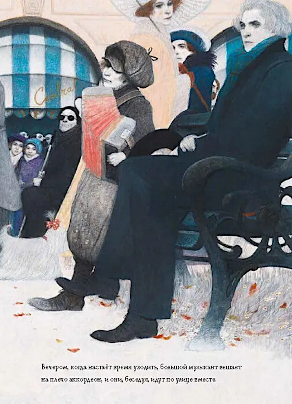 Ничто не должно мешать большому музыканту сочинять настоящую, серьёзную музыку! Особенно маленький уличный музыкант с аккордеоном, который играет у него под окнами. Но что, если мелодия бродячего музыканта, летящая прямо в небеса, сумеет коснуться слуха большого музыканта и тронуть его сердце? Тогда может произойти нечто неожиданное... Эта книга - о волшебной силе искусства.| Издательство | Лорета |