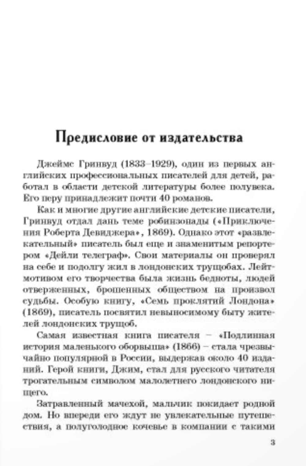 Отчаянная бедность отца, бесконечные раздоры в семье, побои вечно пьяной мачехи - все это вынуждает Джима бежать из дому и стать бродягой. Беспризорный мальчуган ночует с товарищами в лондонских трущобах, спит на сырой земле. Днем он промышляет на улицах, воруя что попадет под руку или питаясь отбросами. Счастливый случай помогает мальчику выбраться из нищеты и начать честную трудовую жизнь. История маленького оборвыша, испытавшего все лишения бродячей жизни, нищету, страх и одиночество, рассказанная классиком английской детской литературы Джеймсом Гринвудом (1833-1929), широко известна в России. Книга выдержала более сорока изданий в нашей стране и всегда радушно встречалась читателями. Для среднего школьного возраста.| Издательство | ЭНАС-КНИГА |
