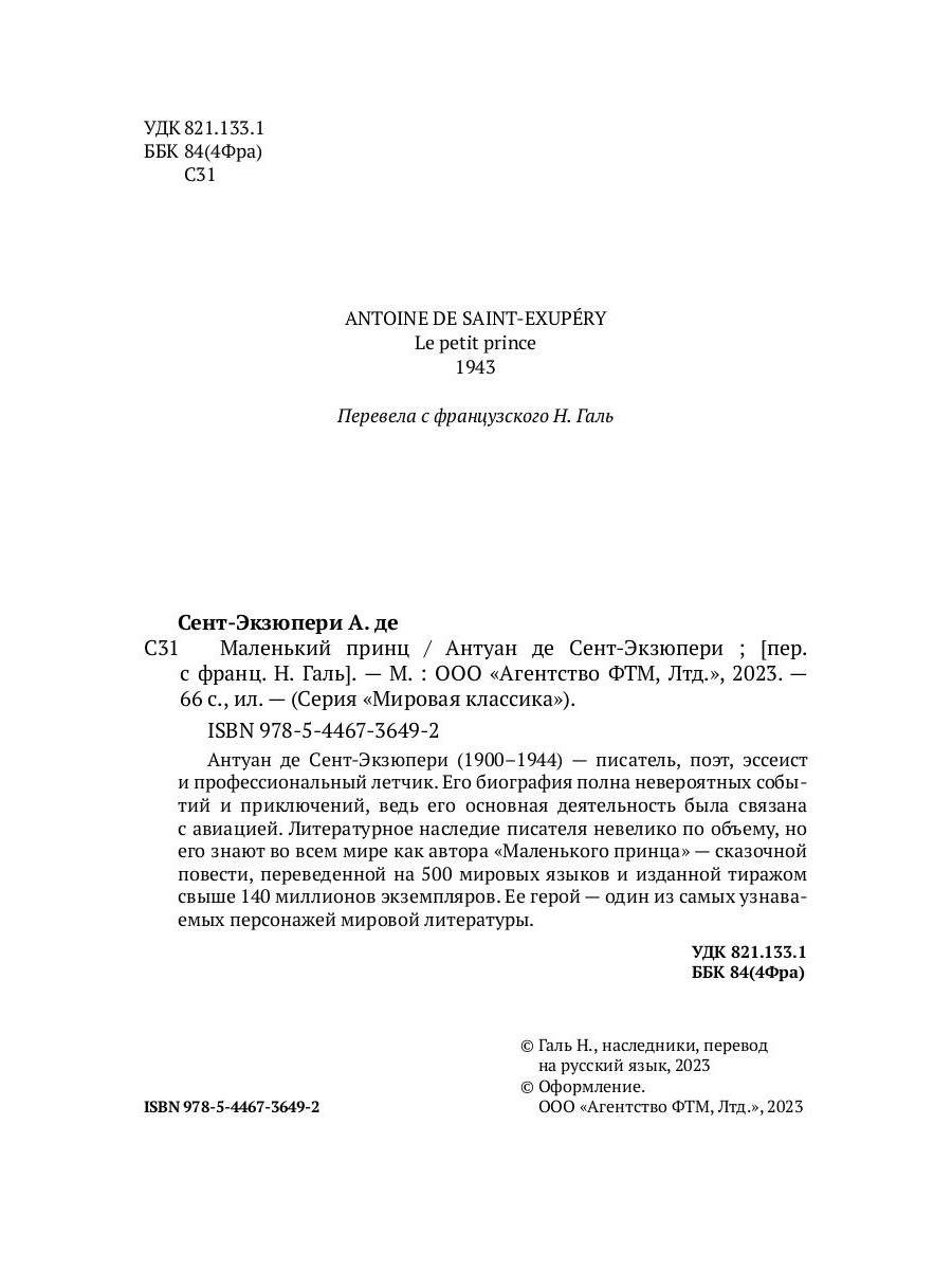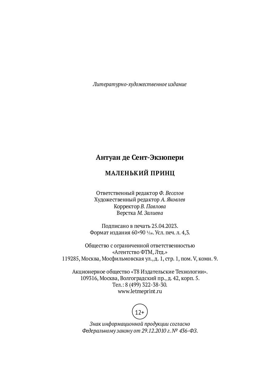 | Автор/составитель | де Сент-Экзюпери Антуан |