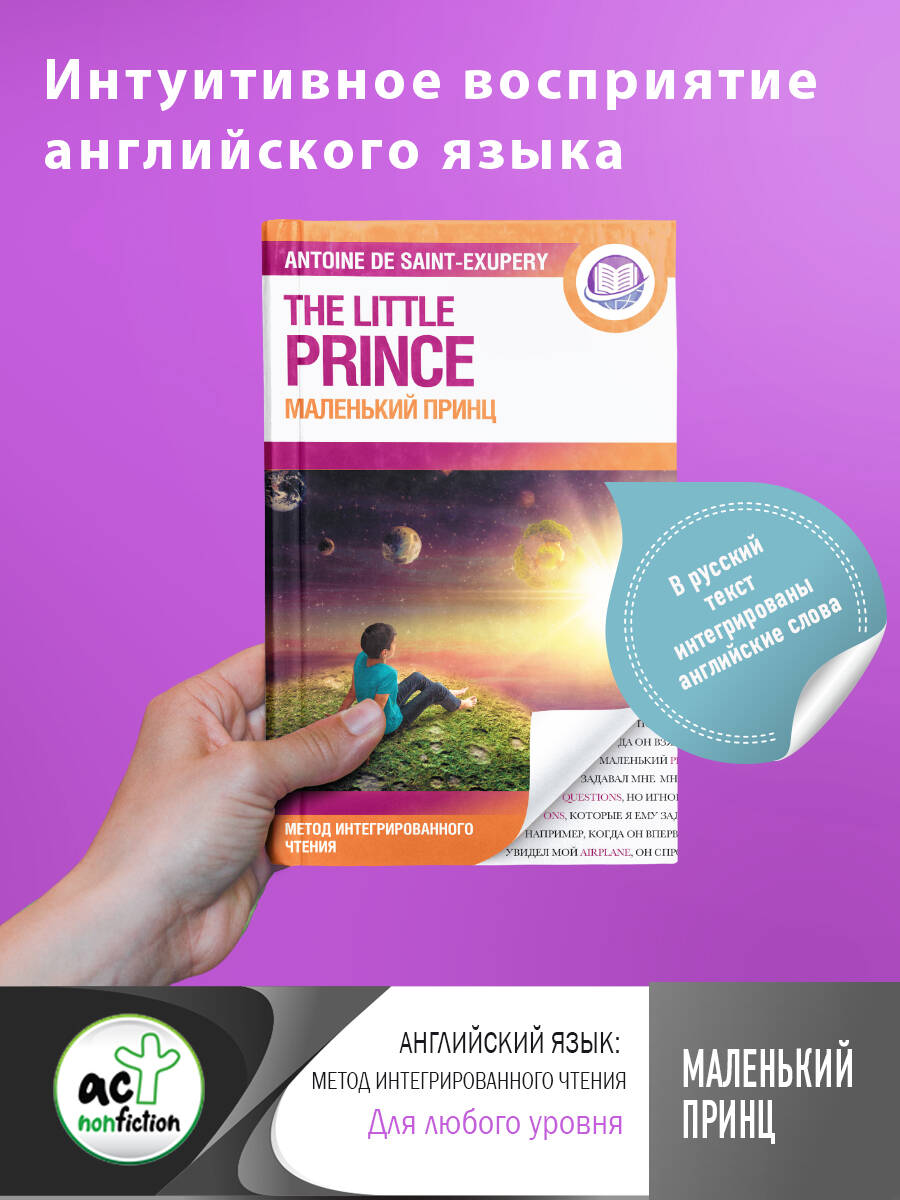 Знаменитое на весь мир произведение Антуана де Сент-Экзюпери "Маленький принц" дается не только на английском языке, но и с переводом на русский с интегрированием в него английских слов. Понять их значение не составит труда благодаря интуитивному восприятию информации, а проверить себя вы сможете по словарю, который дается в книге. Закрепить свои знания и потренироваться можно, прочитав отрывок на английском языке. Издание подойдет для любого уровня владения языком.| Издательство | ИЗДАТЕЛЬСТВО "АСТ" |