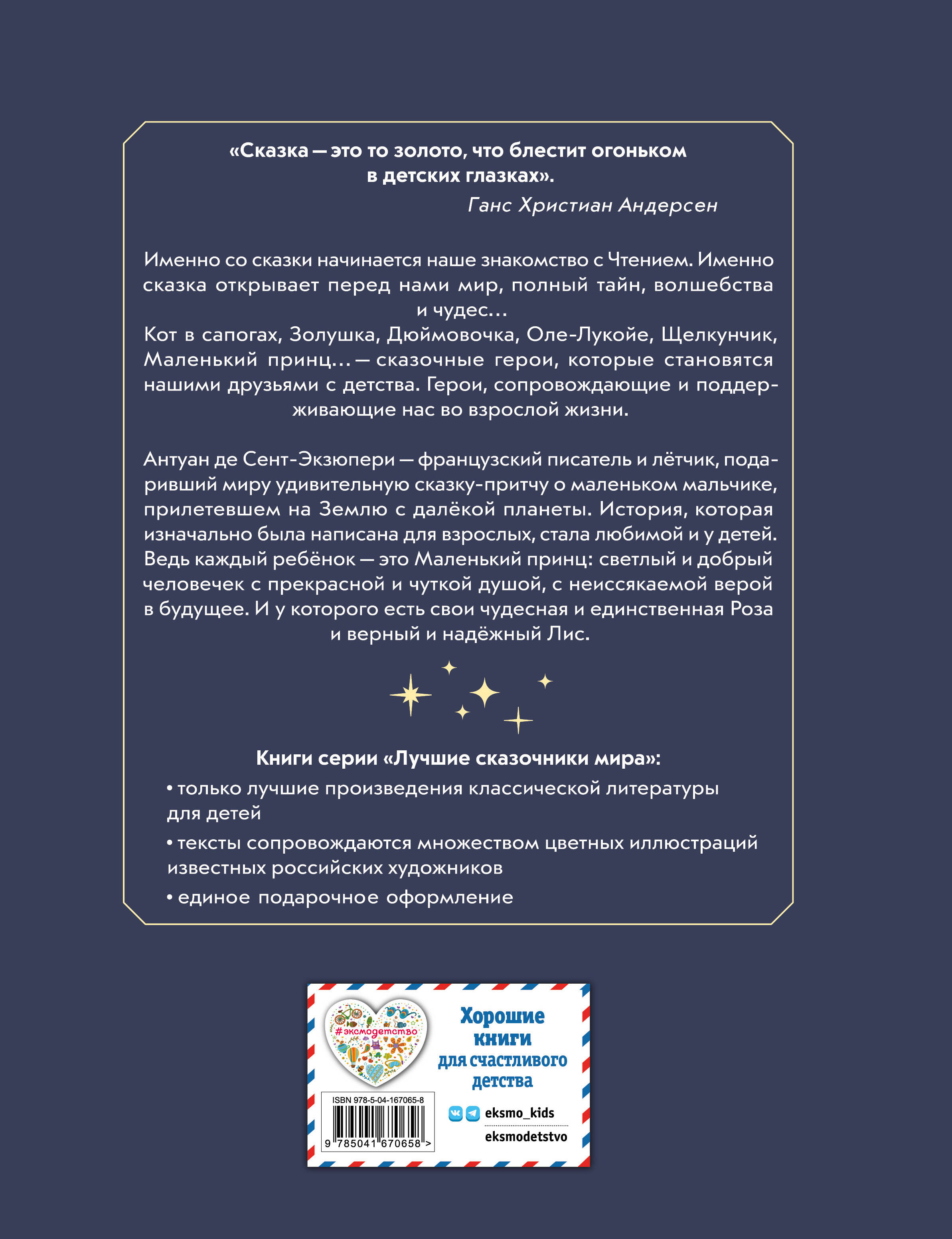• Мировая классика детской литературы. • Канонический полный перевод на русский язык Норы Галь, наиболее близкий оригинальному тексту. • Книга иллюстрирована рисунками известного и заслуженного художника Ники Гольц, которая одной из первых в мире создала свои собственные иллюстрации к сказке Антуана де Сент-Экзюпери. О серии «Лучшие сказочники мира» Кто лучшие сказочники мира? Конечно, Пушкин. Безусловно, Андерсен, естественно, Экзюпери. А еще Ершов и Бажов. Представляем серию «Лучшие сказочники мира» в новом стильном оформлении: главные тексты детских классиков, подарочный формат, крупный шрифт, потрясающие иллюстрации, блинтовое тиснение и золотая фольга на обложке.| Издательство | ООО "Издательство "Эксмо" |
