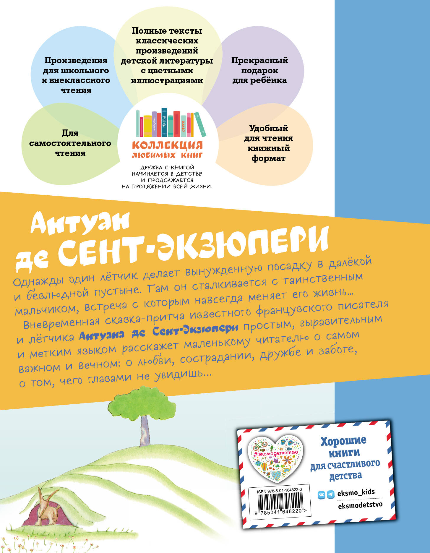 Одна невероятная встреча в далёкой пустыне разделила жизнь лётчика на «до» и «после». «До» он сталкивался с непониманием, скрывал свои истинные мысли и чувства. А «после» - обрёл истинного друга и осознал ценность жизни… Известная сказка-притча о золотоволосом мальчике с далёкой планеты уже больше полувека остаётся одной из самых читаемых книг в мире. Она вдохновляет на новые открытия и свершения, учит ценить жизнь и её многочисленные радости, поджидающие человека на каждом шагу, но которые не каждый хочет увидеть. А Маленький принц, Роза и Лис уже давно стали добрыми друзьями не одного поколения детей и взрослых. Произведение входит в школьную программу. Текст в полном классическом переводе Норы Галь с цветными иллюстрациями автора. «КОЛЛЕКЦИЯ ЛЮБИМЫХ КНИГ» - это: - детская классика с цветными иллюстрациями известных художников; - произведения для школьного и внеклассного чтения; - отличный выбор для самостоятельного чтения; - прекрасный подарок для ребёнка; - единое серийное оформление, дающее возможность собрать свою книжную коллекцию.| Издательство | Эксмо |