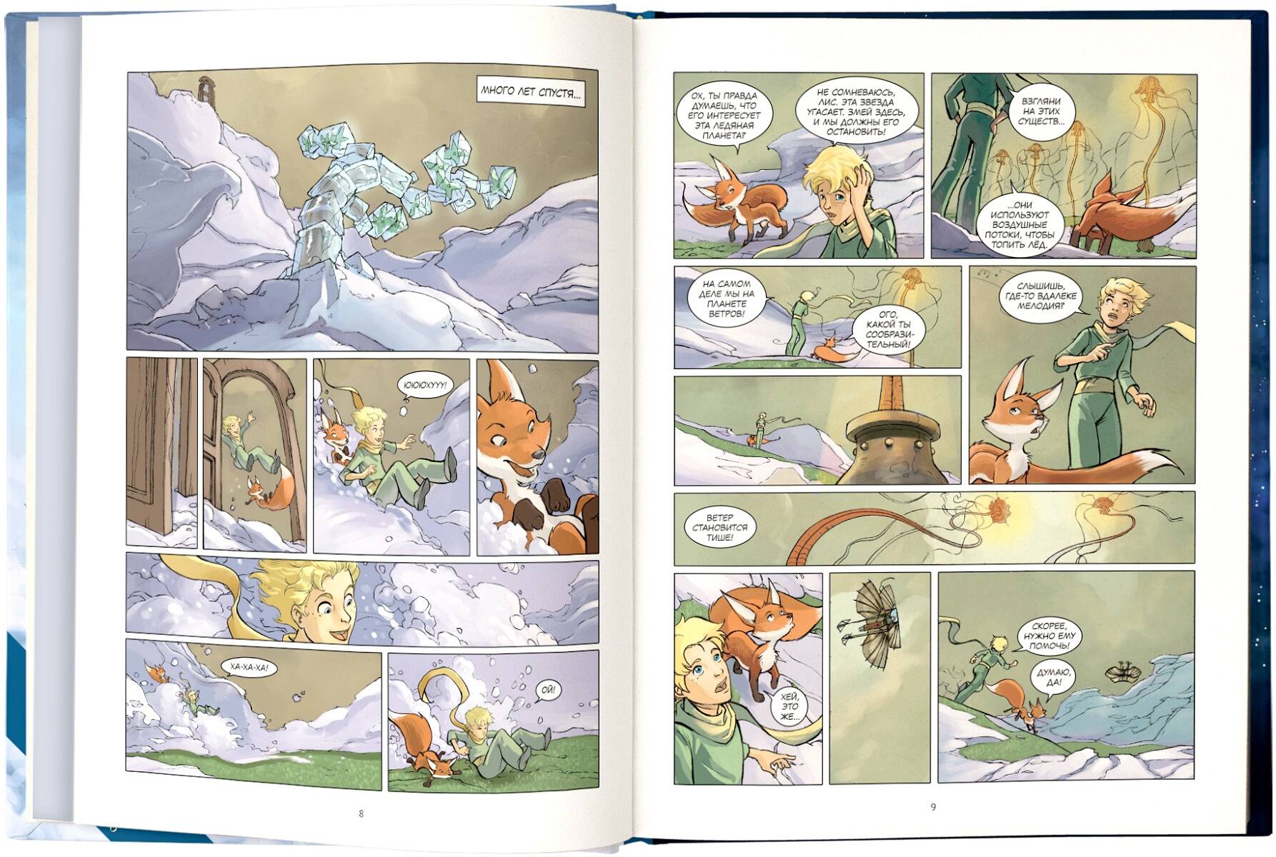 Шедевр Антуана де Сент-Экзюпери прекрасен и по размерам сопоставим с планетой, на которой жил мудрый и храбрый герой его книги. Дельфина Дюбо дарит продолжение истории в формате графического романа. Но это уже не милая поучительная сказка, а целое приключение в красочных иллюстрациях. Мы отправимся к новым планетам и узнаем еще больше странных законов физики, на которых держится вселенная Маленького Принца. Вместе с пушистым другом лисом он проявит себя как добрый лидер и спасет жителей Планеты Ветров от энергетической катастрофы и семейной драмы. А потом спасет и все живое от заклятого врага Змея.