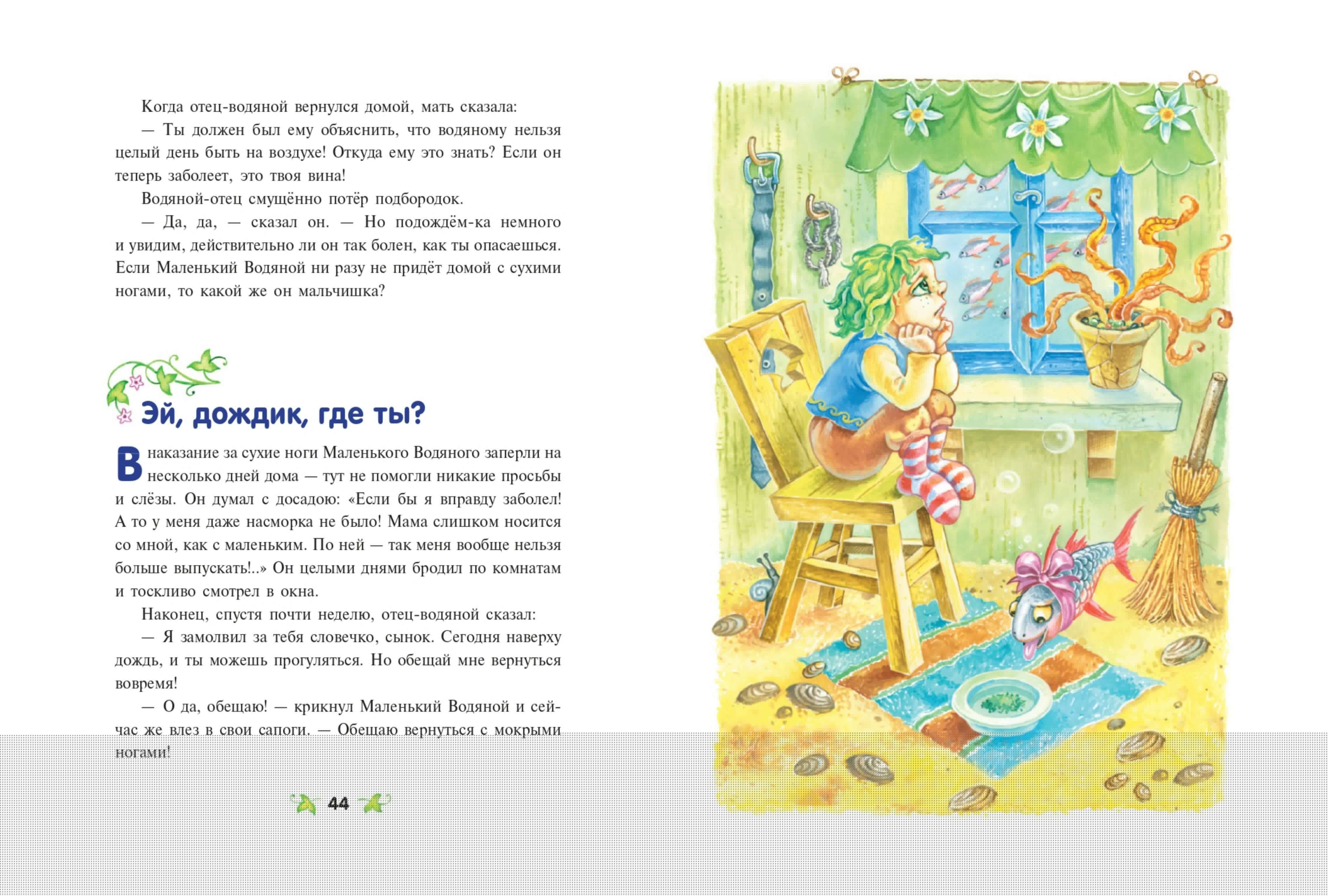 Маленький Водяной - озорной, любознательный герой известной сказки немецкого писателя Отфрида Пройслера. Он родился в мельничном пруду и не понаслышке знает, что такое прятки в водорослях или обед с русалками и колодезным духом. Но необычному мальчику только предстоит познакомиться с миром, выходящим за травянистые берега его дома. Вместе с Маленьким Водяным вы покатаетесь на мельничном колесе, найдёте новых друзей и весело проведёте время. Выразительные, яркие иллюстрации Ольги Ковалёвой дополняют книгу и делают каждого персонажа ещё более живым и задорным.| Издательство | ООО "Издательство "Эксмо" |