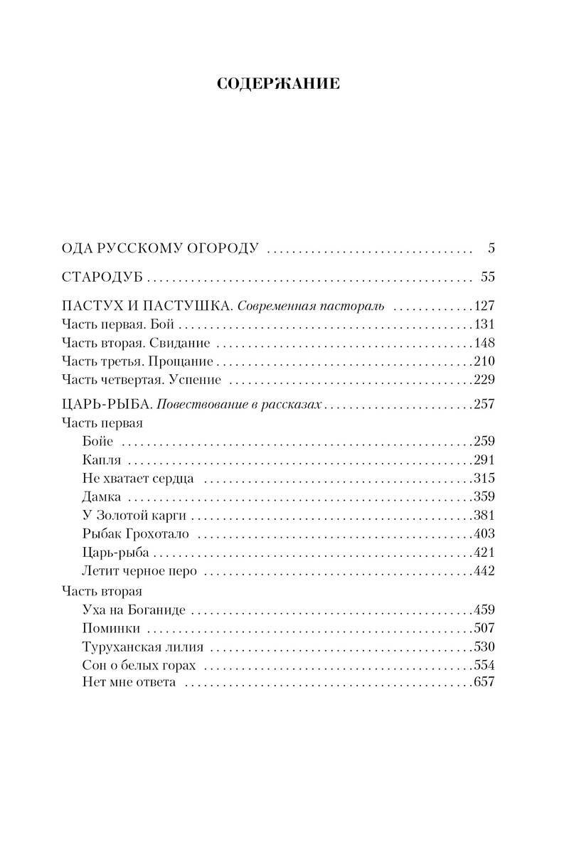 Виктор Петрович Астафьев (1924-2001) родился в сибирском селе Овсянка на берегу Енисея. В 1942 году добровольцем отправился на фронт и прошел всю войну простым солдатом. В трудное послевоенное время сменил множество профессий: работал и плотником, и слесарем, и грузчиком… Главные темы астафьевского творчества - деревенская и военная - во многом автобиографичны. Страстный рыбак, охотник, труженик и воин, все, о чем он писал в своих книгах, Астафьев знал не понаслышке. О несовместимости войны и жизни и о том, как трудно сохранить себя, даже вернувшись с войны без единой царапины. О сибирской природе, ее суровых таежных законах и первозданной красоте, доступной тем, кто не утратил с миром исконной связи. О поэзии крестьянского труда и поисках подлинной веры; о необходимости вернуться "к себе, к тому, каким ты задуман Создателем и взращен природой". В настоящее издание включены избранные произведения Виктора Астафьева: современная пастораль "Пастух и пастушка", повествование в рассказах "Царь-рыба", повести "Стародуб" и "Ода русскому огороду".| Издательство | Азбука-Аттикус Издат.группа ООО |