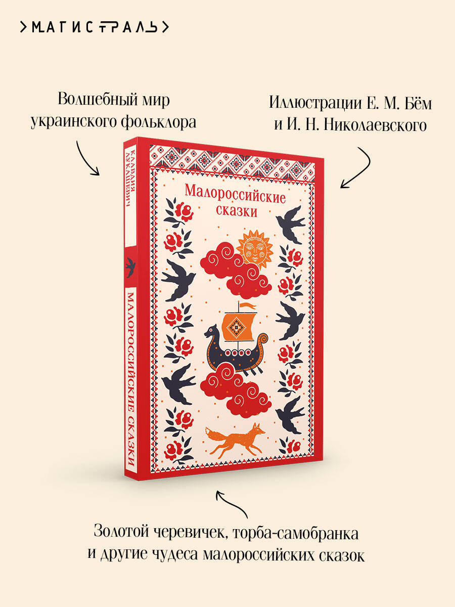 Что за дивный край, Малороссия!.. Из хаты тянется дымок, это жинка наготовила своему мужу ароматные вареники, борщ с пампушками да гуся жареного. В лесу живет лисичка-сестричка, которая обхитрила всех животных. Землю защищают храбрые богатыри, а на печи лежит ленивый дурень, влюбленный в прекрасную панночку. На страницах книги вы встретите знакомые фольклорные сюжеты, приправленные украинским колоритом: Петушок - золотой гребешок, коза-дереза, царевна-жаба, корабль-самолет, торба-самобранка, золотой черевичек (вариация сказки о Золушке). Сказки собраны, переведены и обработаны Клавдией Лукашевич (1859-1931) - популярной детской писательницей дореволюционной России, работавшей по материалам сборников А. С. Афанасьева, Г. П. Данилевского, И. Я. Рудченко, П. П. Чубинского, Дяди Пуфа. Текст сопровождается иллюстрациями Е. М. Бём, И. Н. Николаевского и других художников из издания 1906 года.| Издательство | ООО "Издательство "Эксмо" |