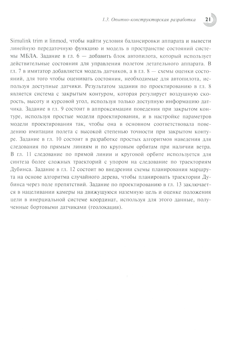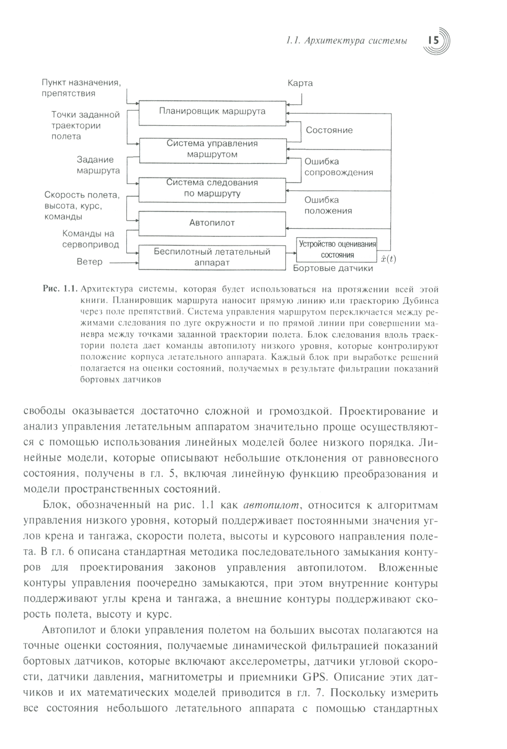 Это издание посвящено управлению беспилотными летательными аппаратами (БЛА). Акцент в книге делается на системы повышения устойчивости управления. Других изданий, которые бы охватывали вопросы моделирования динамики летательных аппаратов, разработки автопилотов (решающих задачи «низкого уровня»), оценки состояния БЛА, а также расчета траектории полета (задачи «высокого уровня»), в настоящее время нет. Целевой аудиторией являются студенты, которые прошли подготовку в области электротехники, компьютерной техники, машиностроения и информатики и прослушали вводный курс по системам управления с обратной связью или робототехнике. Также книга будет интересна инженерам в области аэронавтики, которые заинтересованы во вводном курсе в автономные системы.| Издательство | Техносфера |