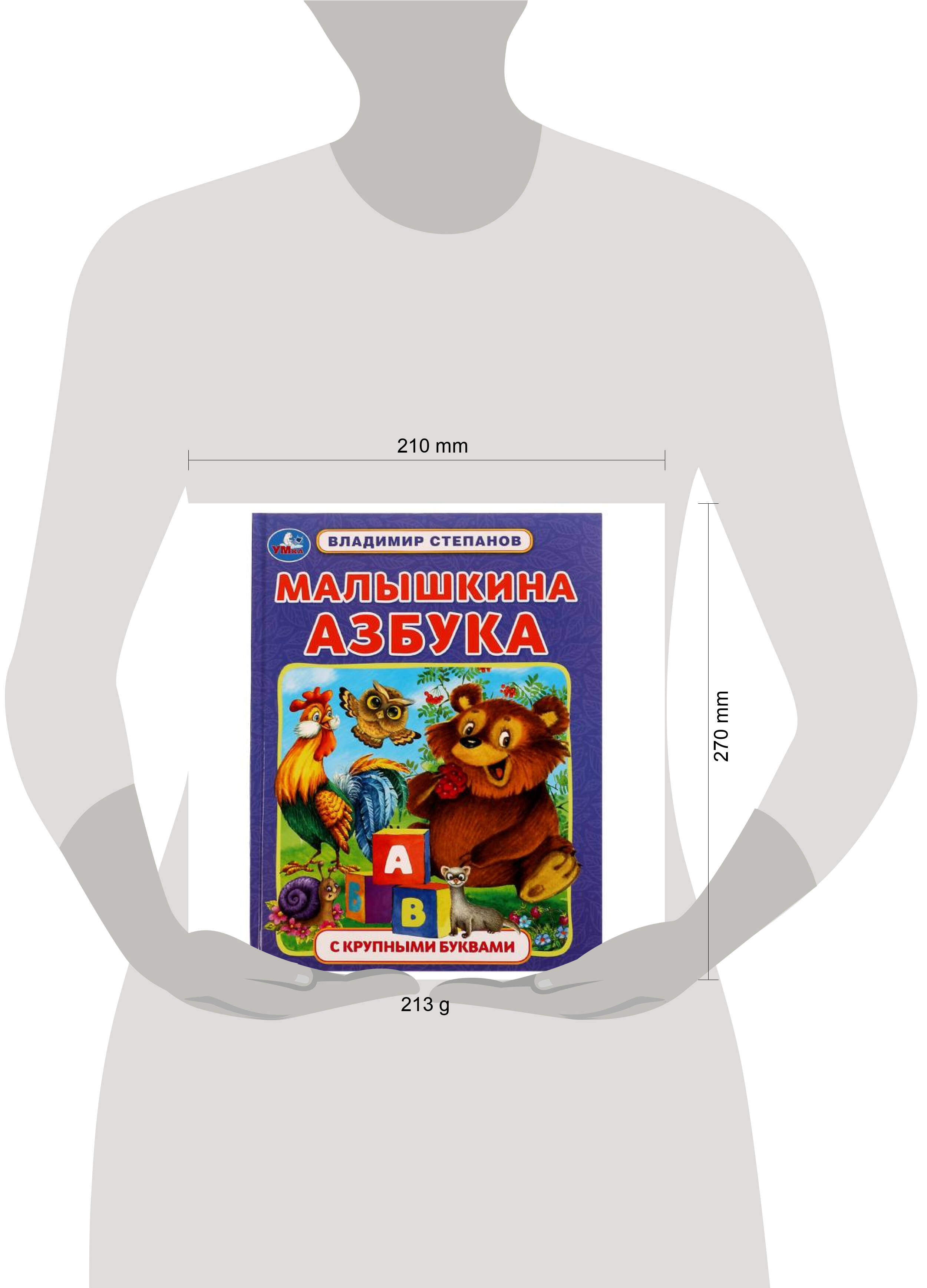 Книга с крупными буквами "В. А. Степанов. Малышкина азбука" ТМ "УМка" станет прекрасным обучающим подарком для ребёнка: - добрые стихи Владимира Степанова - крупные буквы - красочные иллюстрации - твёрдый переплёт Ребёнку будет весело и интересно учить буквы в стихотворной форме, а яркие картинки с изображением милых животных сделают процесс обучения ещё более увлекательным. Благодаря удобному формату книгу можно взять с собой в дорогу. Чтение книги ТМ "УМка" расширяет кругозор и способствует развитию: - внимания - памяти - фантазии - образного мышления Объём: 32 стр. Формат: 197 х 255 мм. Материал: офсетная бумага. Рекомендовано детям старшего дошкольного возраста.| Издательство | С-Маркет ООО |
