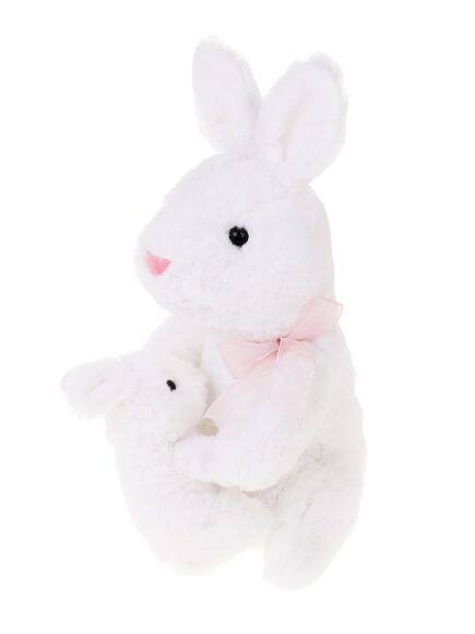 Мягкая игрушка - это то, что никогда не потеряет своей актуальности! Она нужна каждому ребёнку: через тактильные ощущения дети познают окружающий мир и формируют чувство защищенности. Мягкие игрушки радуют и вызывают счастливую улыбку! А ещё мягкая игрушка - это верный друг, которого можно обнимать, укладывать спать в кроватку, брать с собой в поездку и в гости.Размер игрушек (ДхШхВ): мамы-зайчихи - 15х13х25 см, зайчонка - 7х7х15 см. Высота указана по спинке. Изготовлено из текстильных материалов с элементами полимерных материалов. Рекомендованный возраст: 3 года +