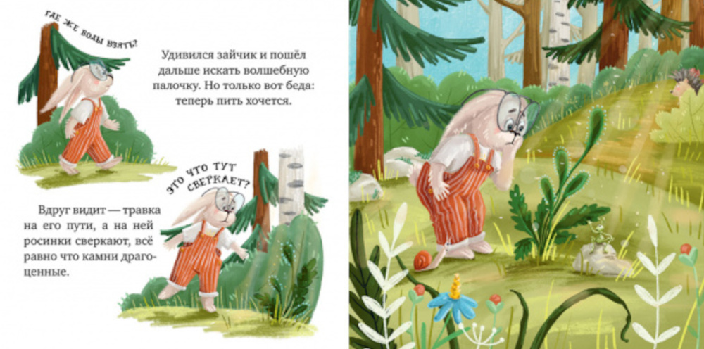 Маленький зайчонок очень любил сказки и как-то раз отправился на поиски волшебной палочки - совсем один. Он столкнулся со множеством испытаний: упал с дерева и поранился, чуть не утонул в болоте и едва не съел ядовитый гриб. Но всегда его спасали мамина любовь, забота и поддержка.| Издательство | Клевер-Медиа-Групп |