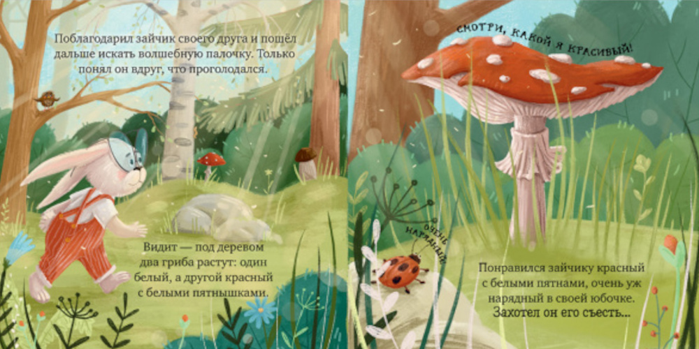 Маленький зайчонок очень любил сказки и как-то раз отправился на поиски волшебной палочки - совсем один. Он столкнулся со множеством испытаний: упал с дерева и поранился, чуть не утонул в болоте и едва не съел ядовитый гриб. Но всегда его спасали мамина любовь, забота и поддержка.| Издательство | Клевер-Медиа-Групп |