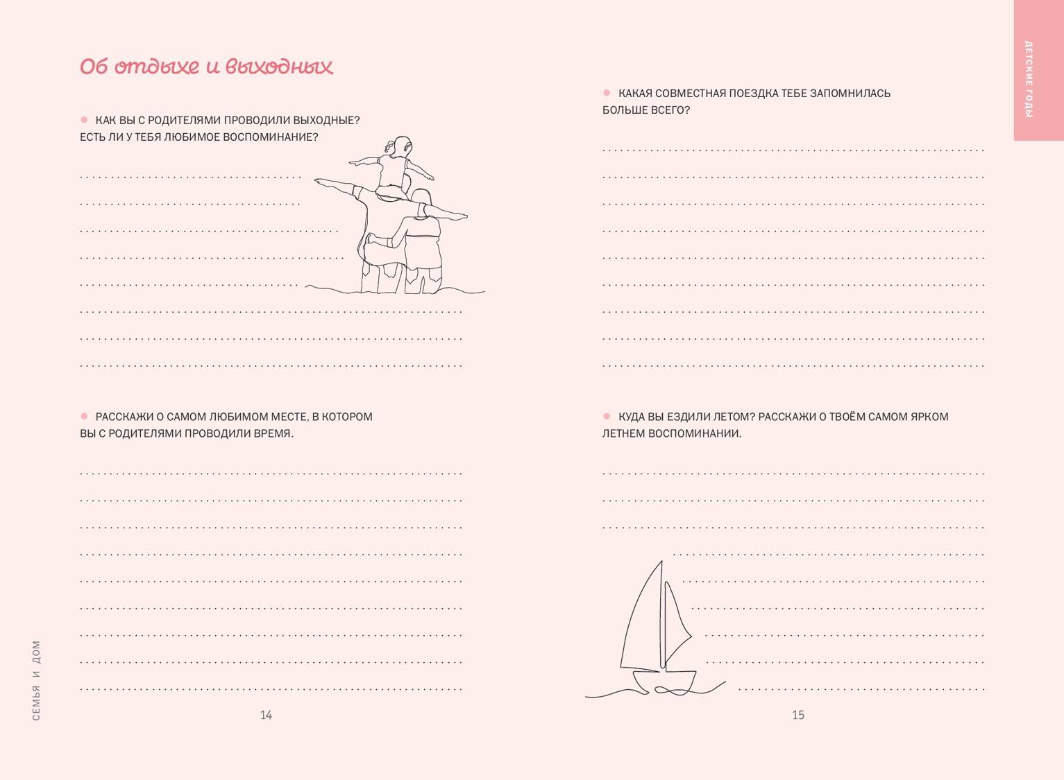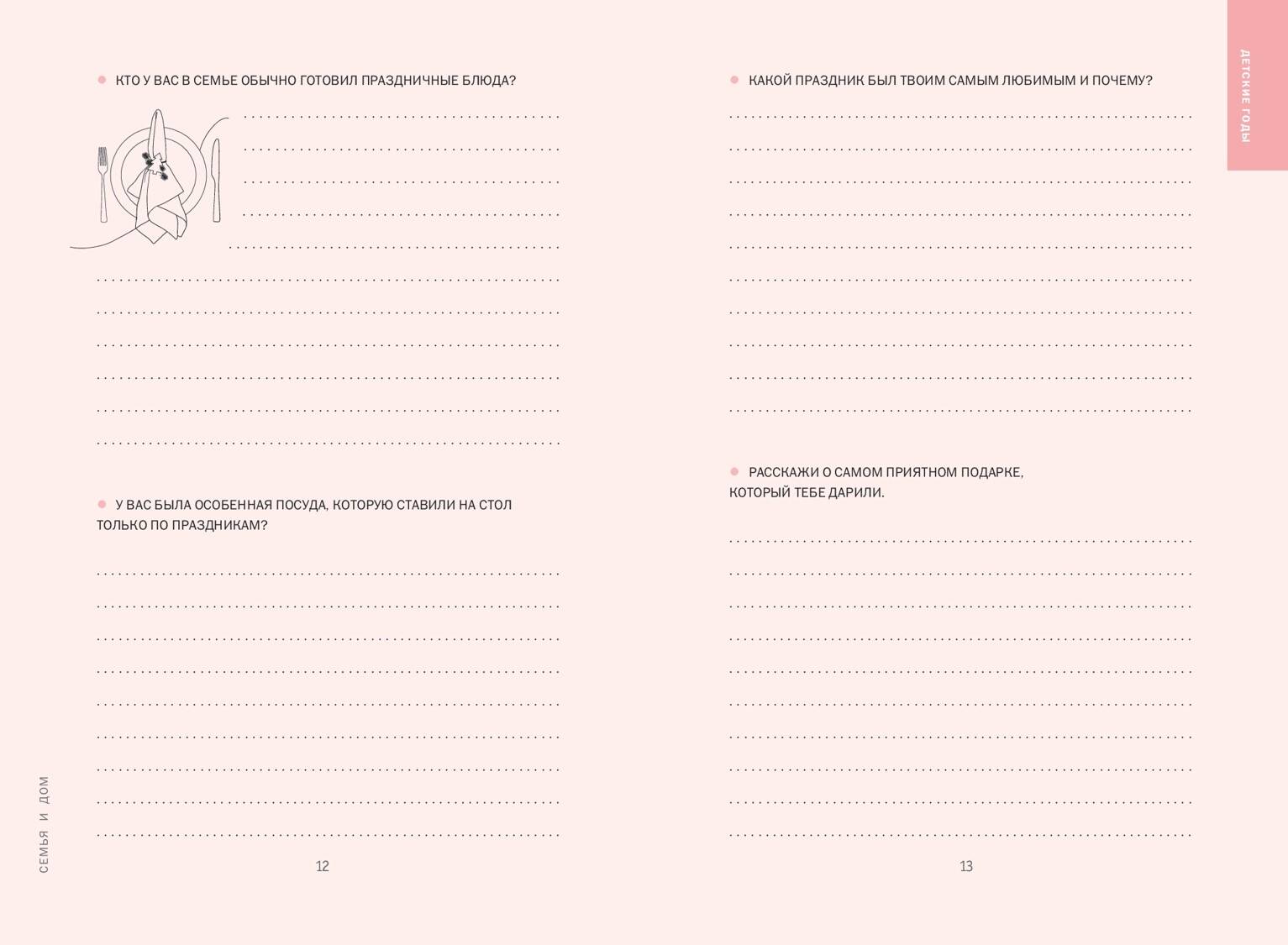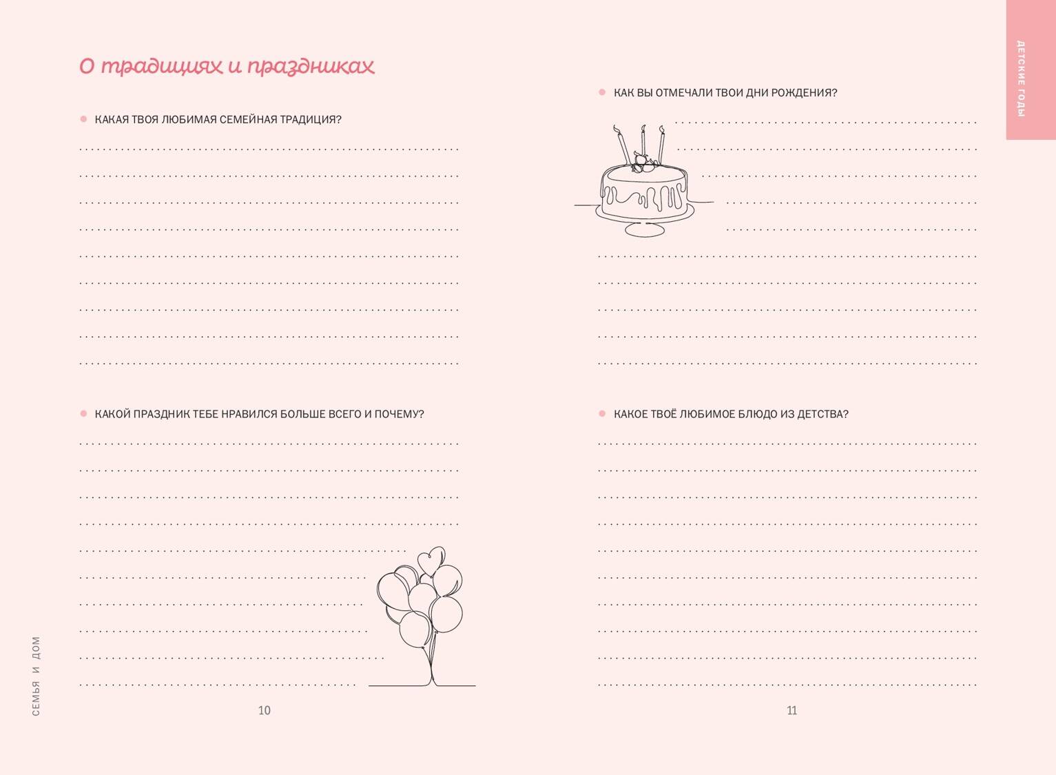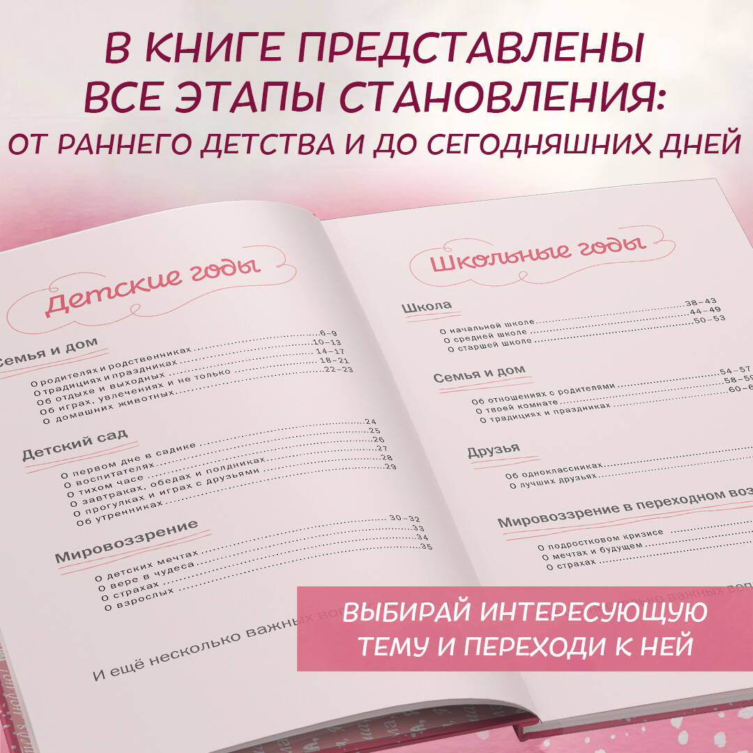 КНИГА ДЛЯ УЮТНЫХ СЕМЕЙНЫХ ВСТРЕЧ - КЛЮЧ К УНИКАЛЬНОЙ ИСТОРИИ ТВОЕЙ СЕМЬИ Наполните сердце вашей мамы радостью, сказав: «Я люблю тебя! Расскажи мне, пожалуйста, о себе!» Узнайте лучше свою маму: какой она была в детстве, о чем мечтала, чему научилась за свою жизнь и как стала такой, какая есть. Сохраните важные воспоминания и даже спустя много лет вы сможете возвращаться к книге, перечитывать и дополнять, а однажды прочитать своим детям и внукам, чтобы и они тоже узнали, каким необычным и интересным человеком была их бабушка и прабабушка. • Как в ее семье отмечали праздники, и какие традиции ей нравились больше всего? • В какие игры она играла с родителями? • Какое лето стало ее самым любимым? • Как проходили тихие часы в ее детском садике, и была ли ваша мама озорником? • Нравились ли ей полдники и обеды? • О чем она мечтала и как представляла себе мир взрослых, когда была ребенком? • Как ваша мама узнала страшную тайну о Деде Морозе? • Какой была ее школа? Какие уроки были самыми любимыми? • За что она получила свою самую позорную двойку? • Как звали маминых лучших друзей, и подшучивали ли они над учителями? • Как выглядела комната вашей мамы? • Была ли она бунтаркой в переходном возрасте? • Как проходили ее выпускные экзамены? • Какой была ее первая работа, и были ли у нее хорошие отношения с руководством? • Как мама познакомилась с вашим папой, и как он сделал ей предложение? • Что она почувствовала, когда впервые взяла вас на руки? Более 310 тем для искренних и душевных бесед с мамой! Эта книга - не просто семейный альбом или сборник вопросов. Эта книга - ваше признание в любви своей маме. Заполните ее вместе с ней или запишите ответы самостоятельно с ее слов и создайте семейное древо. Если хотите, можете задавать вопросы последовательно, ведь все они расположены хронологически - от детства к нынешнему возрасту. Но на самом деле никаких правил нет! Можете начать диалог с любого места и дальше ориентироваться на ход беседы, переходя от раздела к разделу в зависимости от приходящих воспоминаний. Пусть эта новая традиция станет шагом к узнаванию уникальной истории вашей семьи. В книге вы найдете разделы: 1. Детские годы: семья и дом, детский сад, мировоззрение 2. Школьные годы: школа, семья и дом, друзья, мировоззрение в переходном возрасте 3. Студенческие годы: учёба, отношения, мировоззрение 4. Взрослая жизнь: работа, личная жизнь, мировоззрение 5. Наша семья Кроме того, в издании есть места для фото и заметок. Книга «Мама, я тебя люблю!» - это не только идеальный подарок для близкого человека на Новый год, день рождения, 8 марта или день матери, но и ваш проводник в мир психологии и саморазвития, ведь узнавая свои корни, мы узнаем и настоящих себя, а значит, вы сможете разобраться и в вопросах к себе, которые у всех нас возникают в течение жизни. Издание подойдет и тем, кто ищет семейный фотоальбом необычного формата, и понравится вам, если вы обращали внимание на бестселлеры «С тобой я дома», «К себе нежно». Издание станет настоящим украшением книжной полки: у него отличное подарочное оформление, твердая обложка с приятным на ощупь покрытием софт тач, плотные страницы, цветная шелковая лента-закладка, съемный полусупер. Такие же книги мы сделали для папы, бабушки и дедушки - «Папа, я тебя люблю! Моя книга о тебе», «Бабушка, я тебя люблю! Моя книга о тебе», «