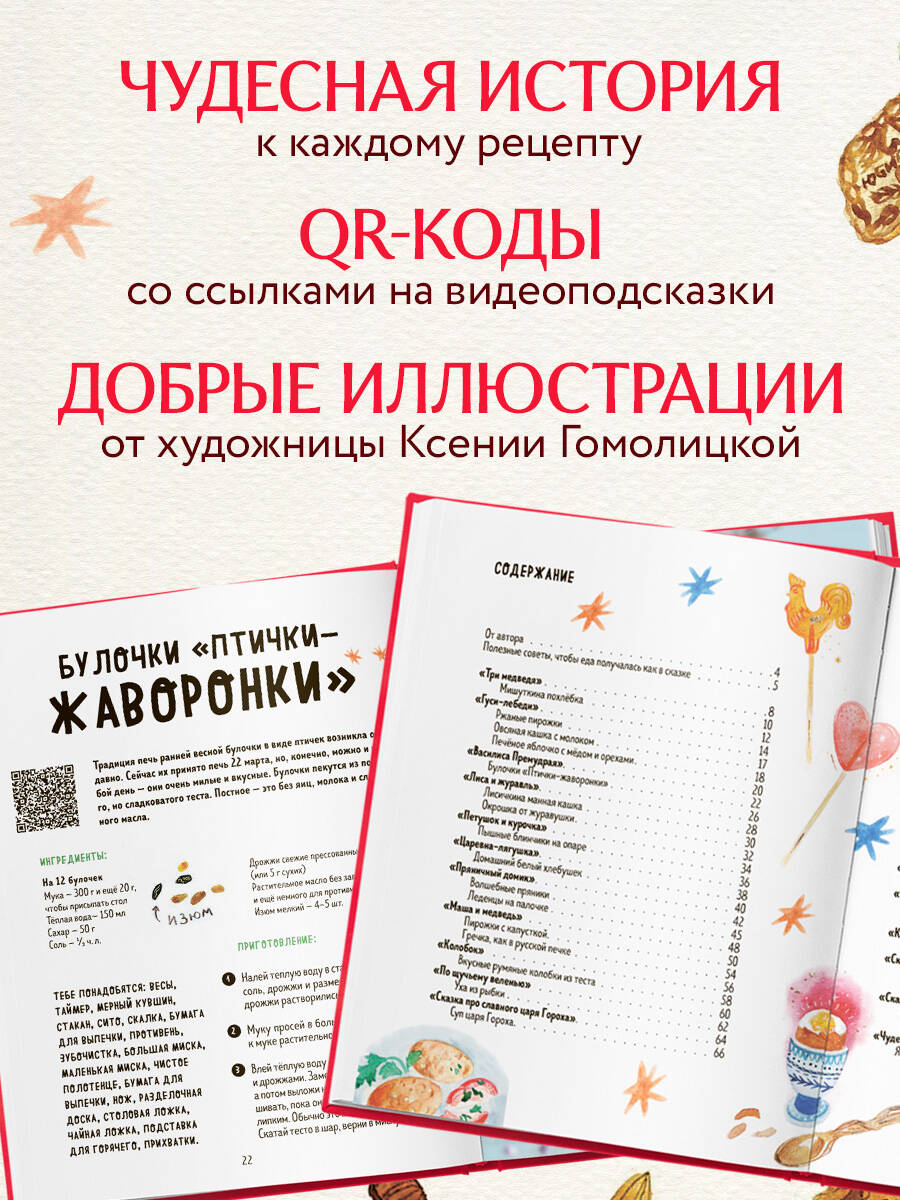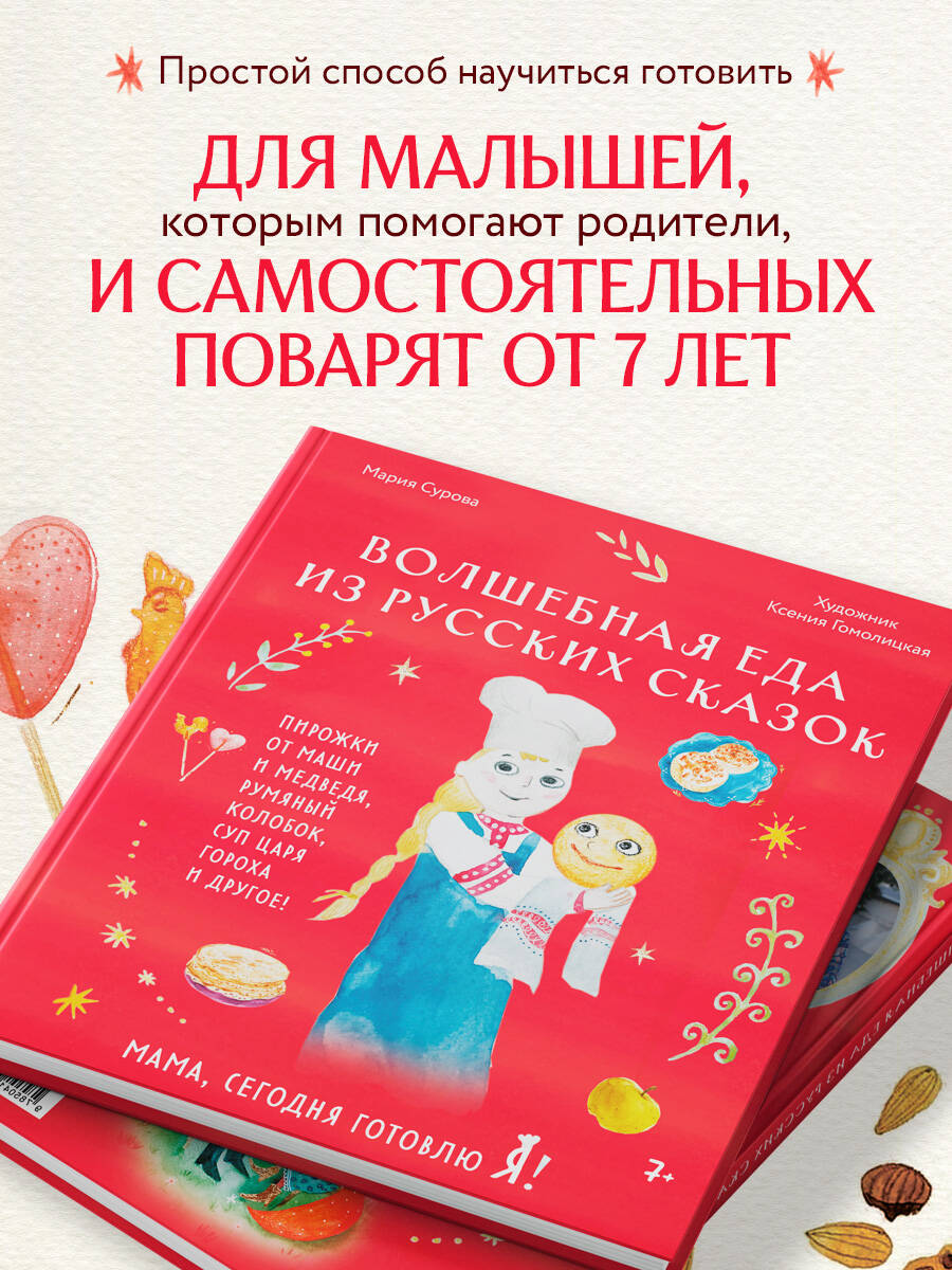 Аннотация: Мама, сегодня готовлю я! Волшебная еда из русских сказок. Пирожки от Маши и медведя, румяный Колобок, суп царя Гороха и другое!