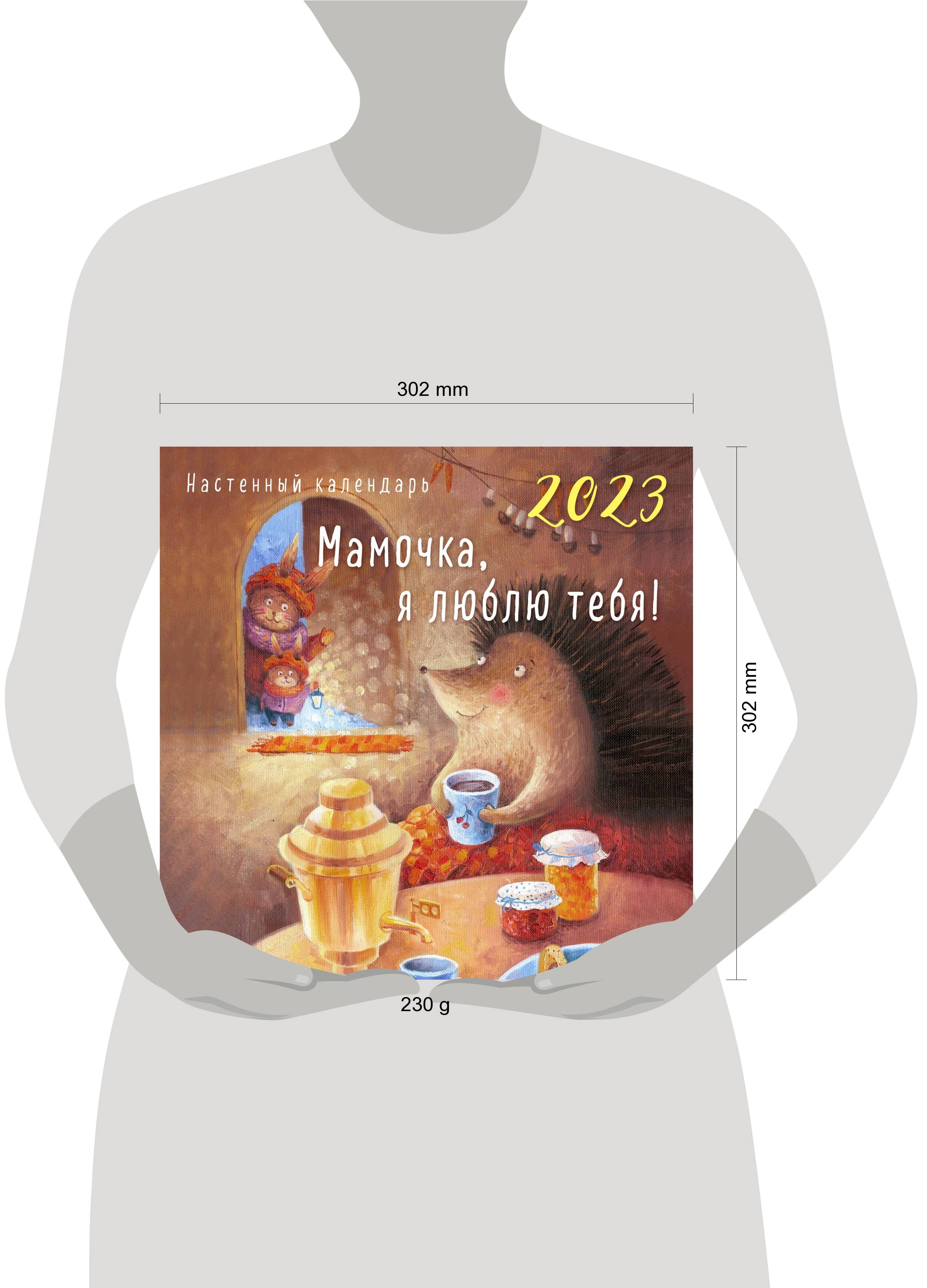 О серии: Наши настенные календари отличаются высоким качеством исполнения! Тщательно подобранные иллюстрации, напечатанные на глянцевой бумаге высочайшего качества, станут настоящим украшением дома, а в календарной сетке найдется место для ваших планов: большие клетки позволят делать записи и организовать свой год! В календаре также отмечены все государственные праздники. В серии настенных календарей издательства «ЭКСМО» каждый найдет тему по вкусу: великие художники, великолепные подборки с самыми знаменитыми произведениями искусства, легендарные кинематографические саги и игры, главные книжные авторы и бестселлеры, фотографии и иллюстрации любимых животных и многое-многое другое! О календаре: Прекрасный душевный календарь с чудесными рисованными картинками, посвященный нашим любимым мамам! Для кого: Для тех, кто хочет выразить свою любовь маме. Технические параметры: - Тип календаря - настенный перекидной. - Год - 2023. - Календарная сетка - с разбивкой по месяцам. - Вид скрепления - скрепка. - Ширина - 30 см. - Высота - 30 см. - Внутренний блок - мелованная бумага 150 г/м2. - Подложка - плотный гофрокартон для поддержания формы. - Индивидуальная упаковка в плотный целлофановый пакет.
