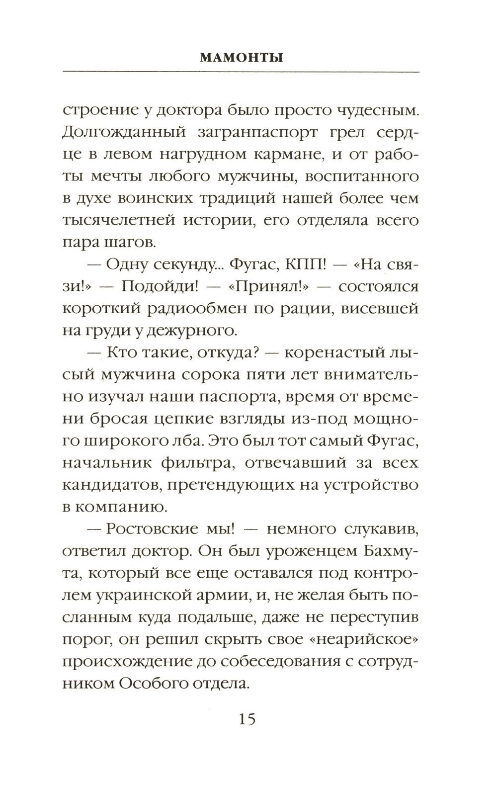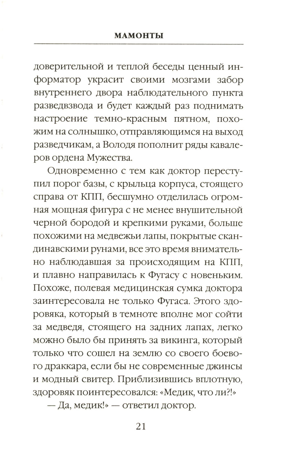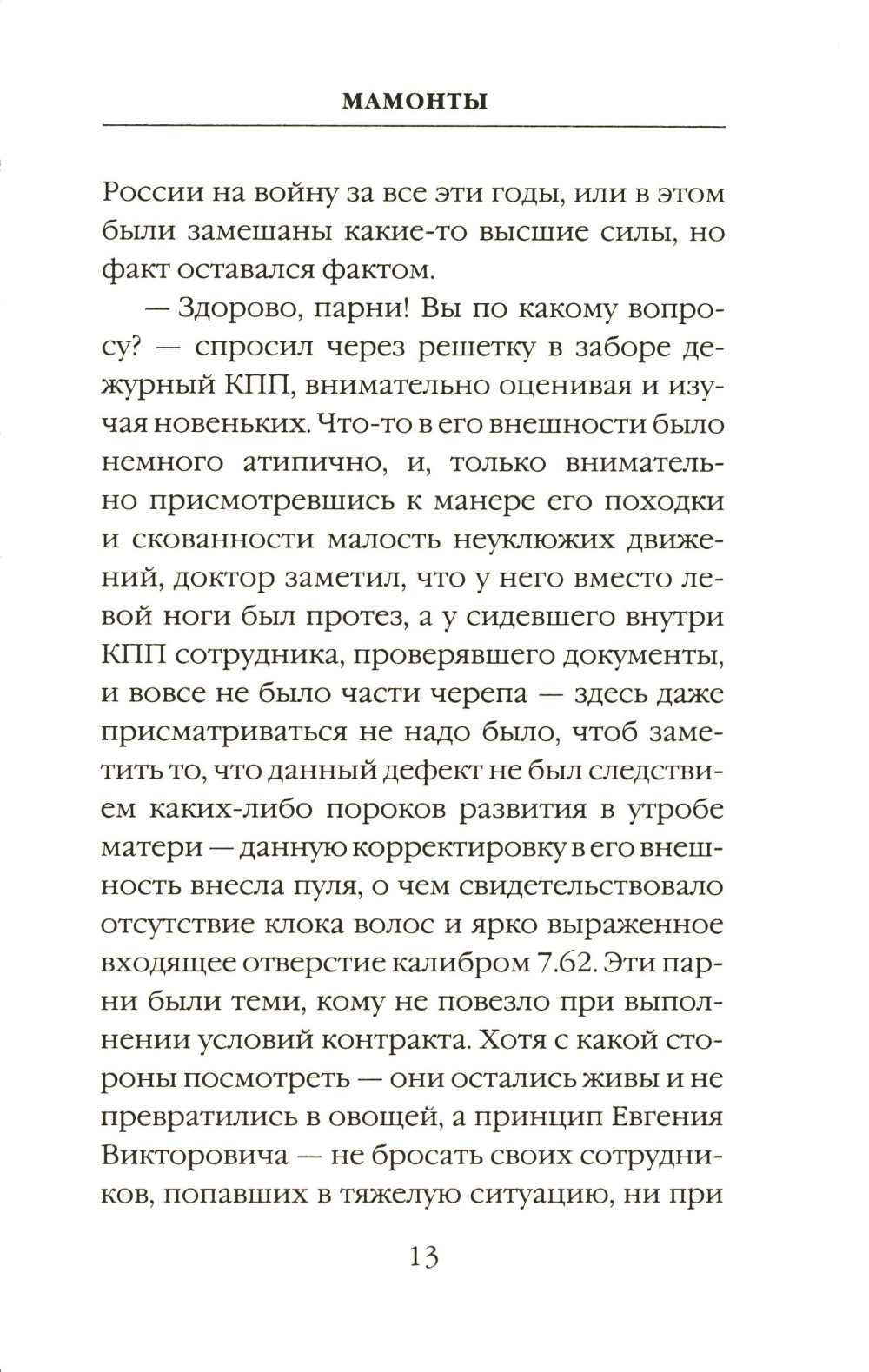 Эта книга штурмового медика с богатейшим багажом боевых действий за спиной, настоящего профессионала, патриота и русского воина - Дуброва. Эта книга посвящается всем сотрудникам компании, живым и павшим для кого кодекс являлся не случайным набором фраз, а жизненным кредо. Эта книга - воспоминания о тех временах, когда компания была отдельным миром, закрытым от внешнего мира и взглядов прохожих. Эта книга - реальная история штурмового медика в рядах штурмового отряда ЧВК «Вагнер» во время боев за Триполи. Самой закрытой части истории компании. Закрытой и самой яркой. Результативной и увлекательной. Кто был в Триполи, никогда не забудут тех событий, узнать о которых, вы сможете в этой книге. В связи с недавними событиями в Мали, эта книга также посвящается памяти павших воинов. Сегодня она публикуется в поддержку «Русича», командира 13-го ШО, одного из героев, фигурирующих в книге. Его подвиги и заслуги перед страной - не вымысел или сухая правка в наградном. Достойный воин и командир. Мы с тобой, брат. Все события реальны Все действия невыдуманные. В честь годовщины гибели руководства ЧВК «Вагнер» и в память о людях, создавших самое сильное подразделение в мире, представляем книгу «Мамонты».| Издательство | Яуза-каталог |