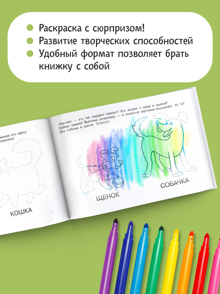 Как искать на страницах книжки картинки-невидимки? Это просто! Это весело и интересно! Достаточно карандашом или ребром воскового мелка сделать несколько штрихов по страничке. Когда на чистом листе бумаги как по волшебству появляются картинки животных, малыш чувствует себя настоящим волшебником, создающим собственный мир. Отличная возможность превратить занятия в увлекательную игру: ребёнок выучит весёлые загадки и угадает, какие картинки-отгадки «спрятались» на страницах книжки. Можно выполнить штриховку восковыми мелками, мягким простым карандашом, а получившийся рисунок раскрасить акварельными красками. Рисовать - легко, учиться - интересно!| Издательство | АСТ |
