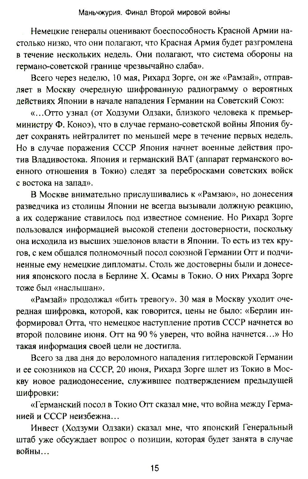 На протяжении многих лет японская военщина готовилась к войне против Советского Союза. После оккупации в 1931 г. Маньчжурии здесь была развернута самая боеспособная часть японских вооруженных сил - Квантунская армия, численность которой увеличивалась из года в год. На советско-маньчжурской границе не прекращались военные провокации японцев. Во время Великой Отечественной войны, несмотря на наличие советско-японского договора о ненападении, СССР вынужден был держать там крупные силы, чтобы охладить воинственный пыл сынов Страны восходящего солнца. Закономерным итогом всего этого стало вступление Советского Союза в войну против Японии в августе 1945 г., что привело к быстрому разгрому Квантунской армии и завершению Второй мировой войны. О том, как это было, рассказывается в новой книге военного историка А.В. Шишова.| Издательство | Вече |
