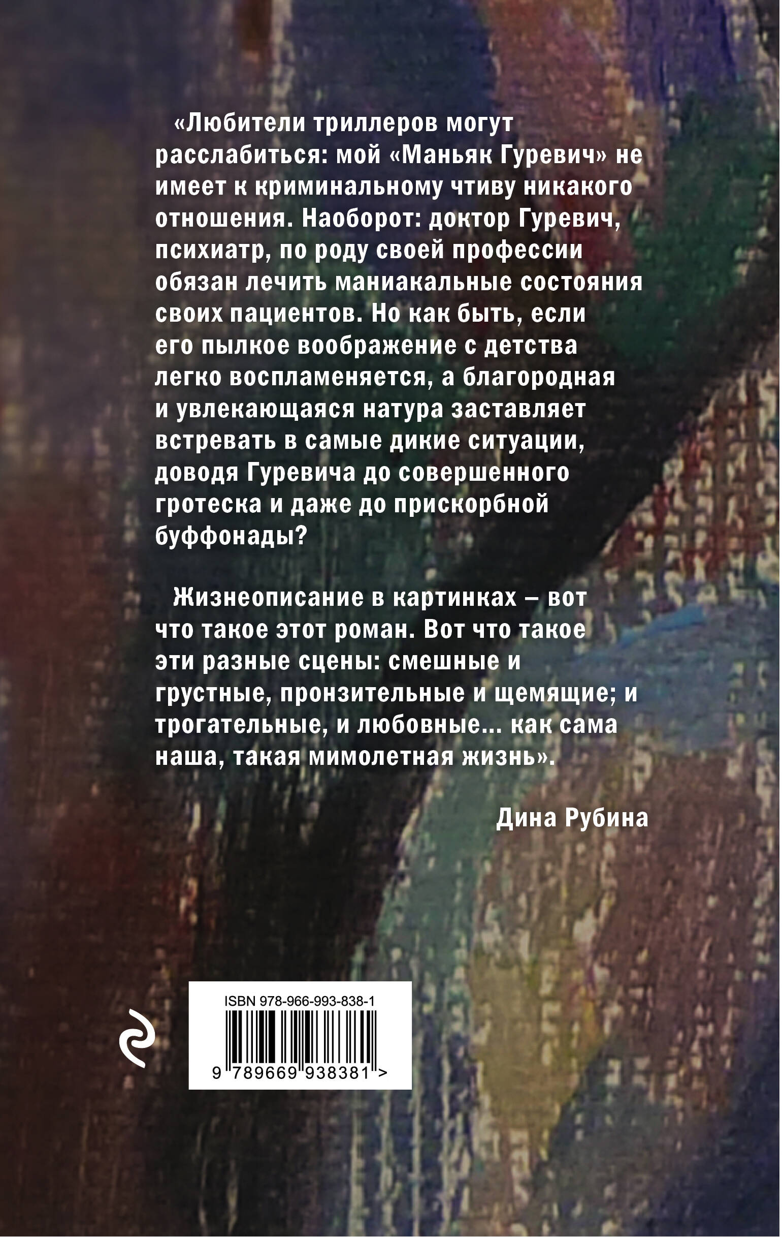 КНИГУ ДИНЫ РУБИНОЙ «МАНЬЯК ГУРЕВИЧ» НУЖНО ЧИТАТЬ, ПОТОМУ ЧТО: 1. ЭТО НОВЫЙ - ЯРКИЙ, ДОБРЫЙ, ЛЕГКИЙ - РОМАН АВТОРА. 2. В ЦЕНТРЕ - ВРАЧ, СПЕЦИАЛИСТ ПО ПСИХИАТРИИ, В ЖИЗНИ И МЕДИЦИНСКОЙ ПРАКТИКЕ КОТОРОГО - МНОЖЕСТВО ВЕСЕЛЫХ И ДРАМАТИЧЕСКИХ, ТРОГАТЕЛЬНЫХ И НЕЛЕПЫХ, ГРУСТНЫХ И ГОМЕРИЧЕСКИ СМЕШНЫХ ИСТОРИЙ. 3. ЭТО ЖИЗНЕОПИСАНИЕ В КАРТИНКАХ, СЮЖЕТЫ И КОЛОРИТ КОТОРЫХ ВО МНОГОМ НАПОМИНАЮТ НАМ СОБСТВЕННУЮ ЖИЗНЬ. 4. ГЛАВНАЯ ИНТОНАЦИЯ РОМАНА - ИРОНИЯ И ПАРАДОКС, КОТОРЫХ ТАК НЕ ХВАТАЕТ В НАШЕ СУМРАЧНОЕ КОВИДНОЕ ВРЕМЯ. 5. ВЫСОКАЯ ТЕМПЕРАТУРА ЭМОЦИЙ ГАРАНТИРОВАНА.| Издательство | Форс Украина ООО |