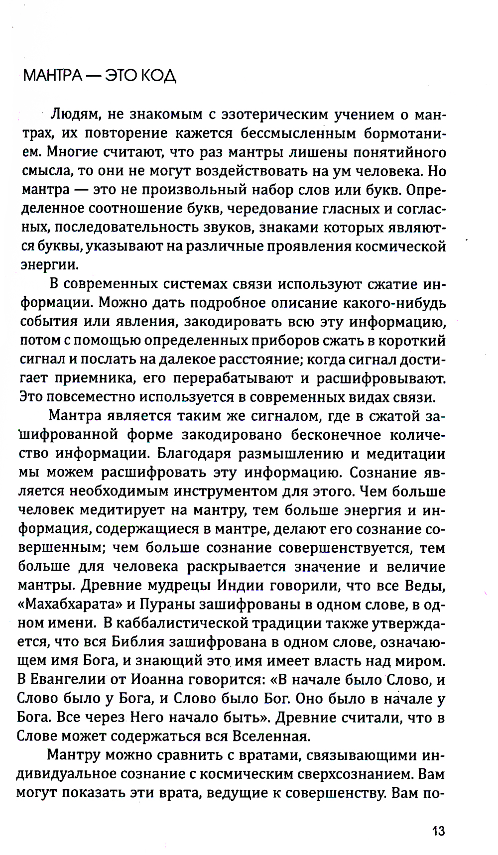 Мантры - это священные формулы, несущие в себе космическую энергию и оказывающие преображающее воздействие на сознание, жизнь, судьбу человека. Наука о мантрах, являющаяся основой сокровенных учений Востока, открывает тайны проявления Логоса и показывает те знаки, которые помогают идти по пути гармонии, самопознания и счастья. В книге приведены наиболее могущественные - мантры из ведических и тантрических писаний, также даются целительные и защитные мантры. В книге подробно объясняется практика мантра-йоги, раскрывающая потенциал и предназначение человека, истоки мантр и механизм их позитивного влияния на ум.| Издательство | Амрита-Русь |