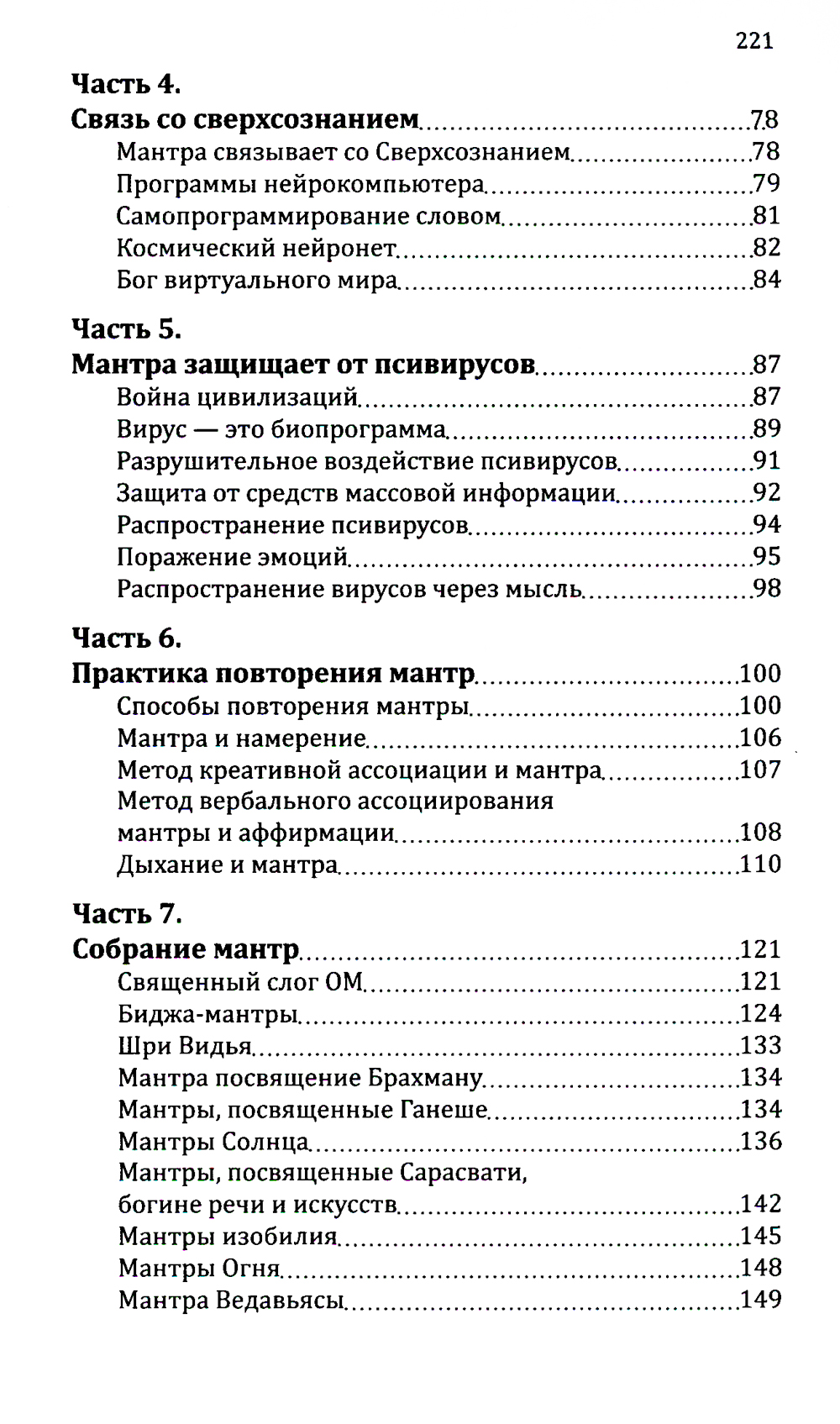 Современная наука и традиции мудрости рассматривают вселенную как океан вибраций, энергетических полей и волн. Мантры - это особые слова и слоги, несущие в себе космические вибрации и наполненные силой и светом. В этой книге приведены практики работы со словами силы, медитативные техники, открывающие сакральные пространства слова, а также более ста проверенных временем мантр, дарующих исцеление, совершенство, мудрость и внутреннее пробуждение.| Издательство | Амрита-Русь |