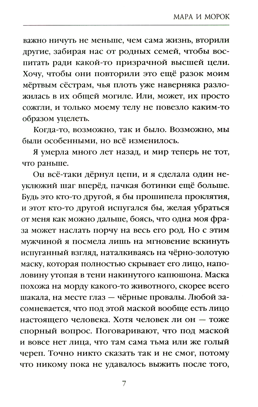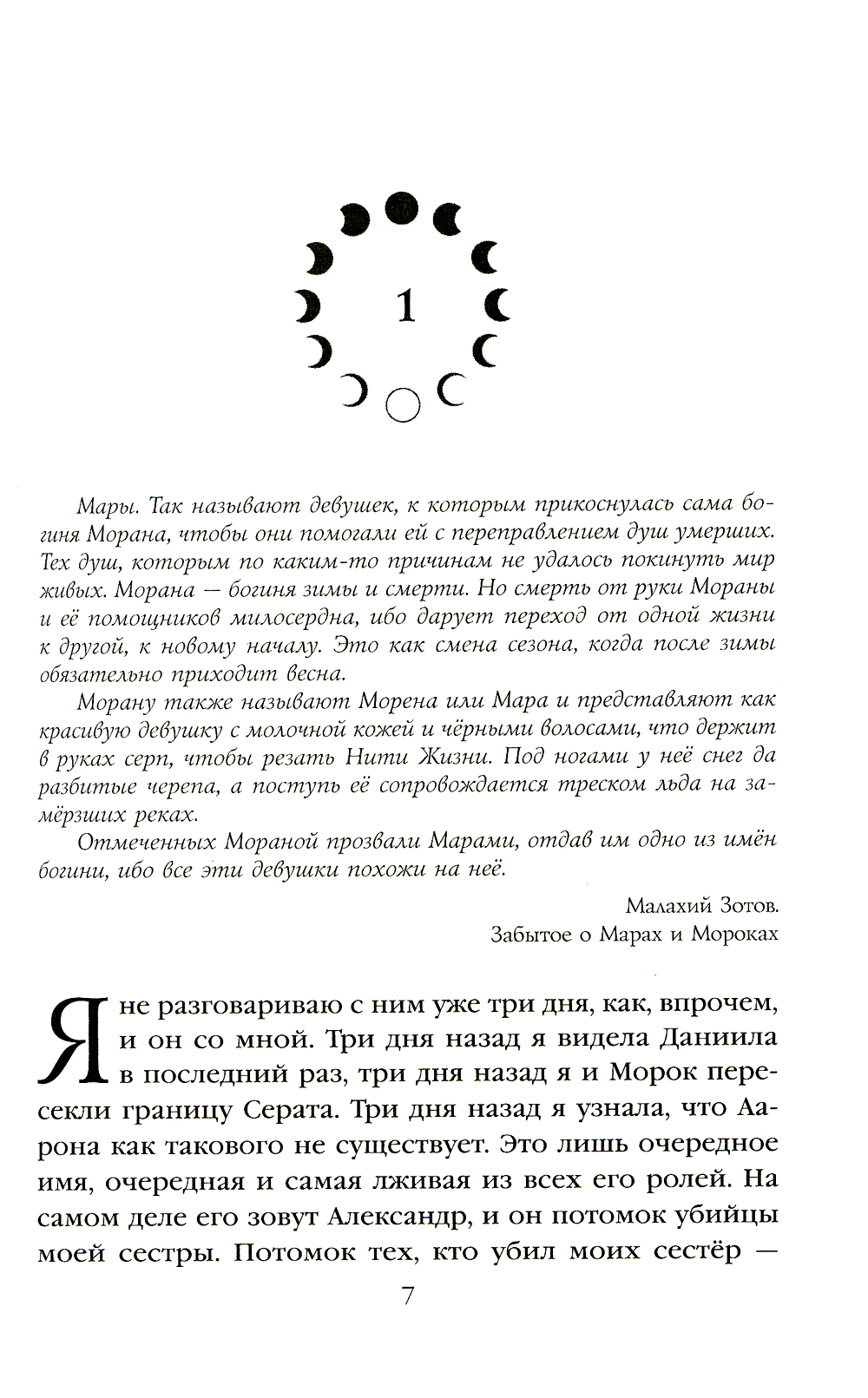 Таких, как я, называют Марами - отмеченными самой богиней смерти Мораной. Когда-то у меня и моих шести сестёр был свой путь. Тогда люди нас уважали и просили о милосердии. Они приносили нам подношения и молились нам. Но 200 лет назад все изменилось, когда принц Серата осмелился поднять руку па одну из нас. Я пыталась отомстить, но погибли мы все. Теперь правители Аракена, погрязшие в длительной войне со своим соседом Сера-том, решили вернуть меня к жизни. Дать второй шанс на месть и свободу, привязав меня к тому, против кого я никогда не пойду. Таких, как он, называют Морок, и их боятся абсолютно все. После предательства Морока Мара живой попадает в руки потомков своего врага. Ей придётся лицом к лицу встретиться с Северином - нынешним королём Серата - и узнать, какую судьбу он приготовил для неё. Ей предстоит разобраться в том, как много лжи таится в её прошлом и настоящем. Ей необходимо найти способ завершить свою давнюю месть. Однако Мара не единственная, кому нужно принять решение. Морок должен сделать выбор, который он больше не может откладывать. В прежние времена персонажи из сказок были реальны и встречались смертным едва ли не каждый день. Я много путешествовал, собирая легенды, слухи и даже откровенные небылицы о Марах и Мороках. Однажды я наткнулся на историю одной Мары, которая жила приблизительно за три сотни лет до исчезновения всех служительниц богини Смерти. Её настоящее имя намеренно скрывали, и я уверен, что эта история вышла особенной, потому что семья девочки не смогла выполнить главное правило - покинуть родные места. Малахий Зотов| Издательство | Эксмо |