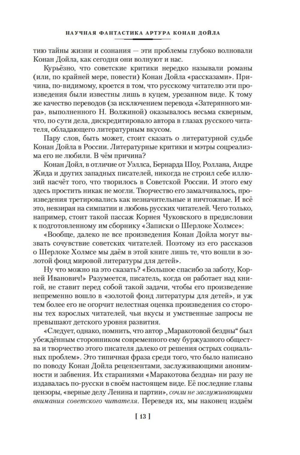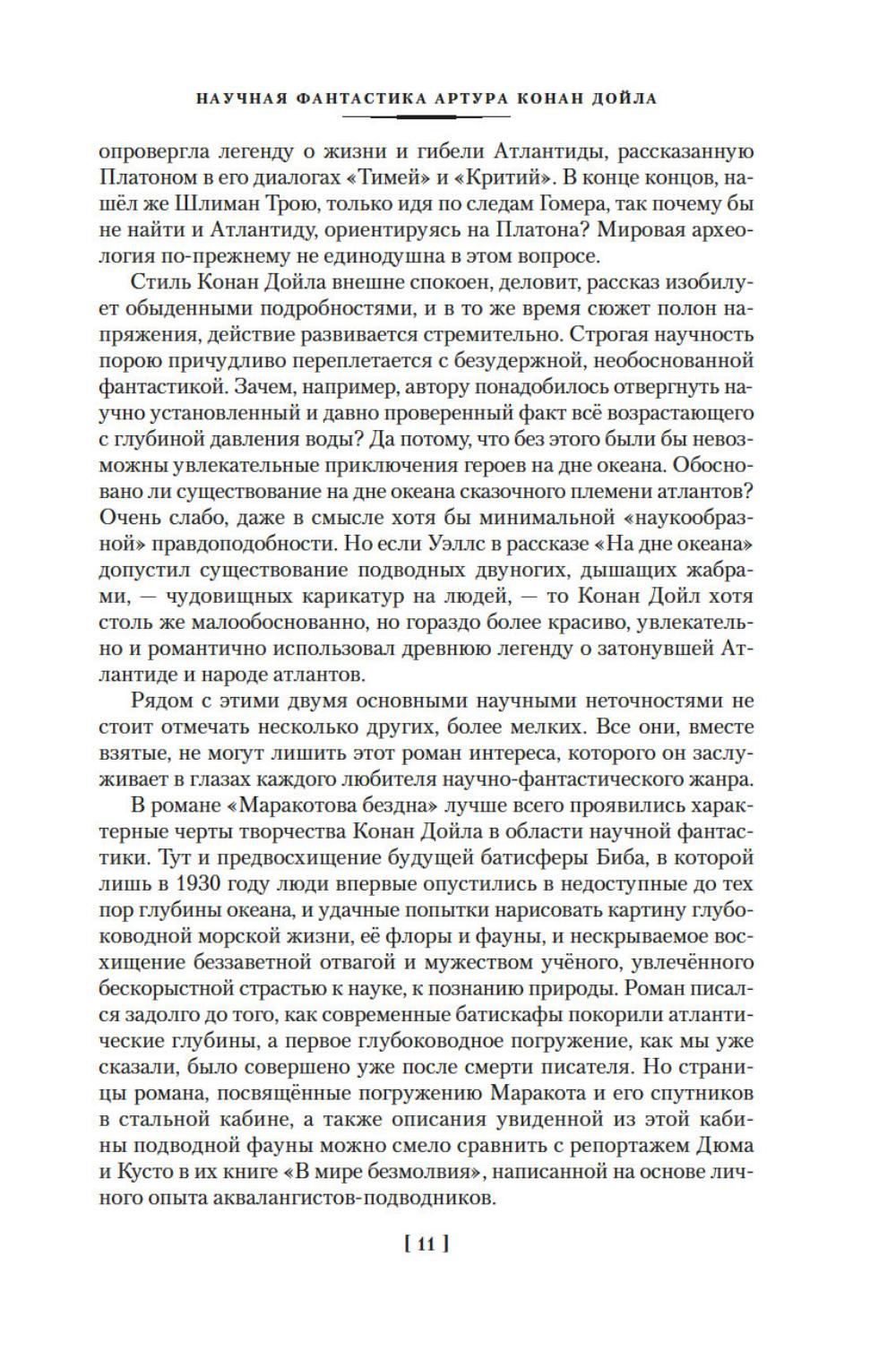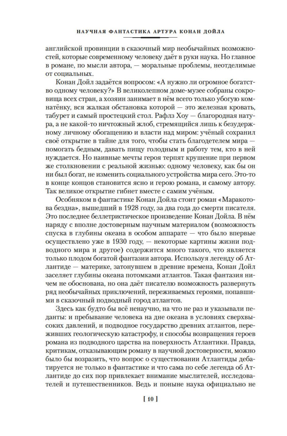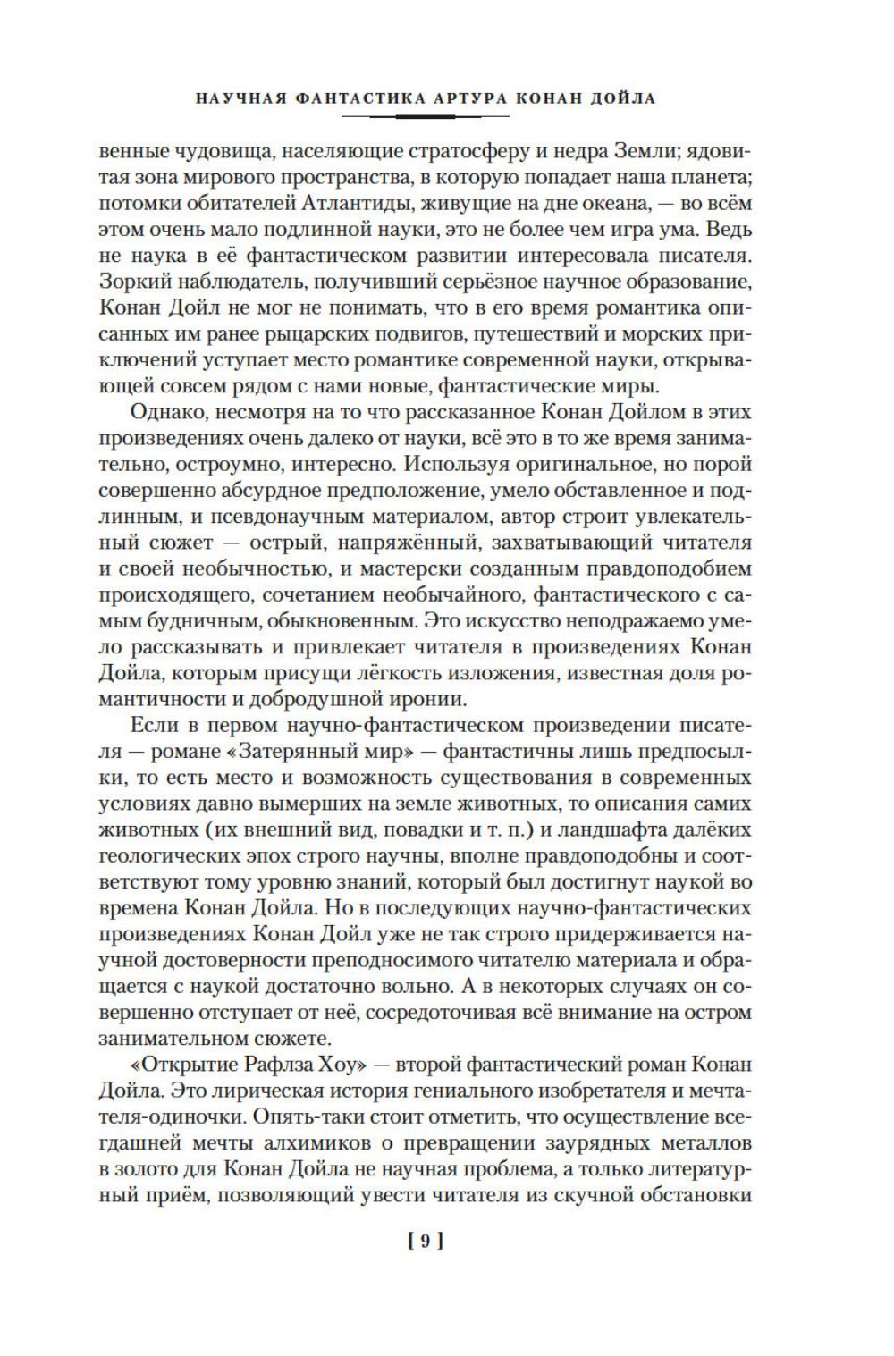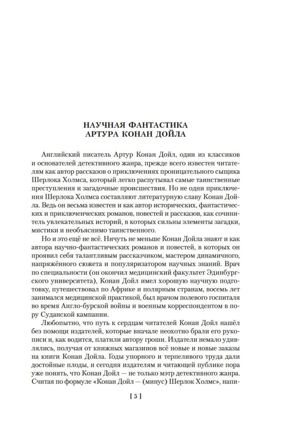 Крупнейший английский писатель, публицист, доктор медицины и доктор права сэр Артур Конан Дойл известен всему миру как непревзойденный мастер детективного и приключенческого жанров. Многие герои, рожденные его пером, обрели поистине грандиозную известность по всей планете: это и сыщик Шерлок Холмс со своим верным спутником доктором Ватсоном, это и неутомимый герой Наполеоновских войн бригадир Жерар, и английский рыцарь сэр Найджел Лоринг. В настоящее издание вошли фантастические произведения Дойла: цикл об удивительных приключениях профессора Челленджера, а также романы «Открытие Рафлза Хоу» и «Маракотова бездна», каждый из которых является несомненным шедевром. Тексты сопровождаются оригинальными иллюстрациями американских и английских художников.