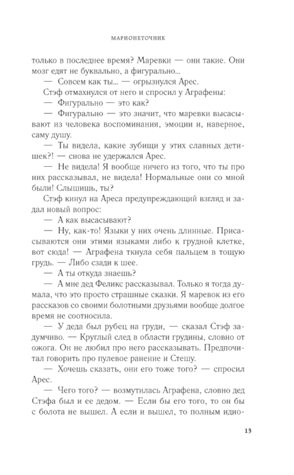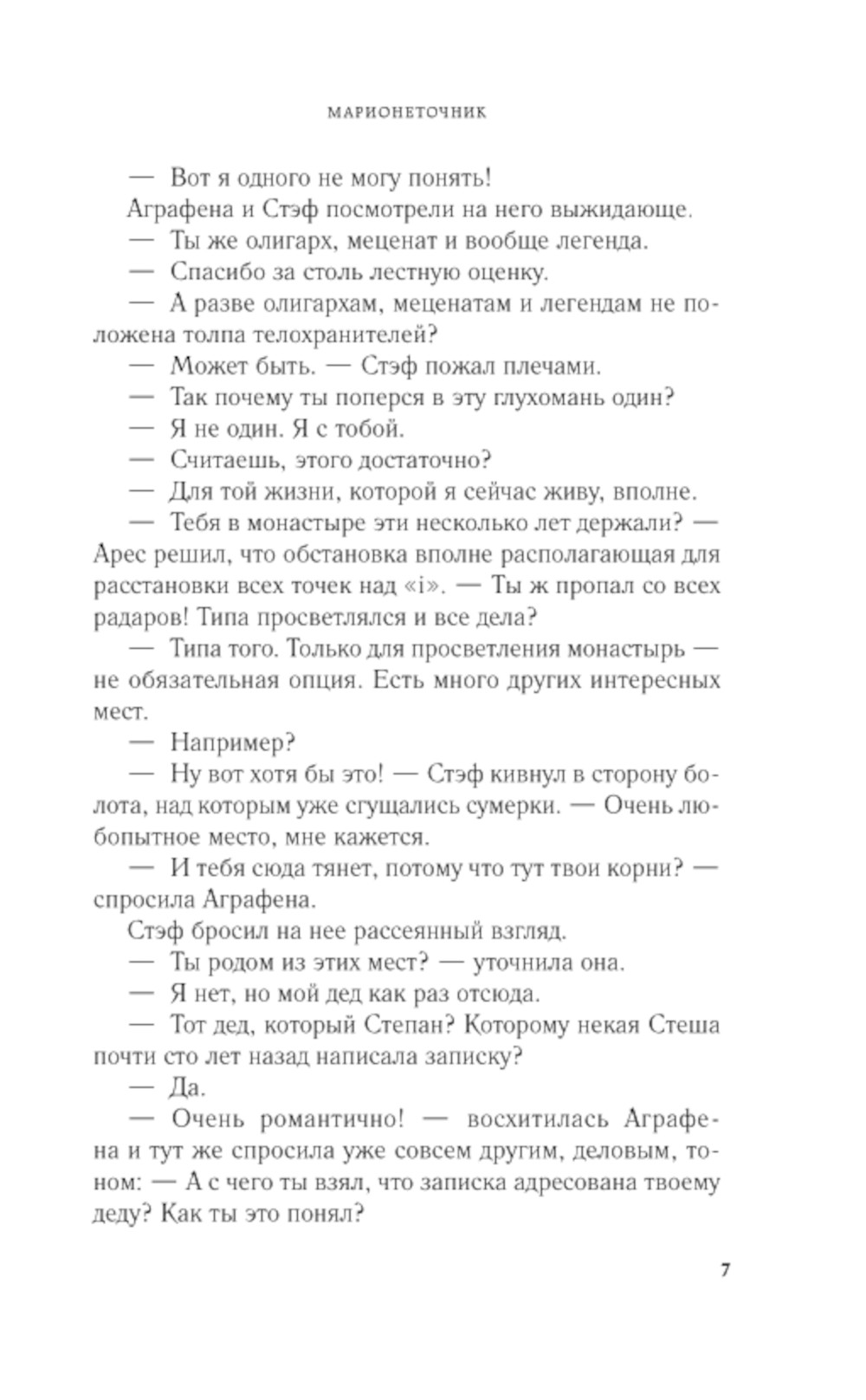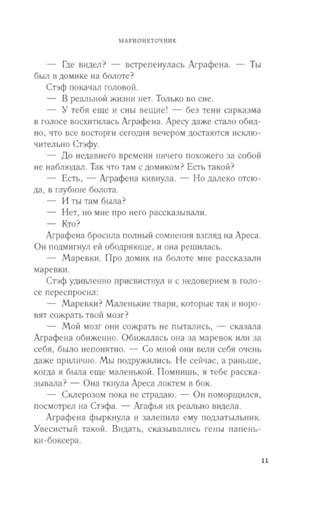 Татьяна Корсакова - популярный автор любовно-авантюрных романов с элементами мистики. Из-под ее пера вышло более двух десятков книг. Сюжеты рождаются из городских легенд, народных сказаний, древних книг и собственной буйной фантазии. Бесконечно древняя рыба Марь, чешуя которой превратилась в камни, дремлет в бездонных водах... Лишь изредка открывается её глаз, чтобы тому, кого приметил, принести либо горе, либо счастье. Вот и Стэф - умный, везучий, расчётливый, не знает, куда заведёт его поход по болотным хлябям. А девушка из давнего-давнего прошлого всё зовёт и просит спасти, вырвать из снов древней рыбы, вернуть к жизни. С каждой минутой поход становится всё опаснее - особенно с появлением на болотах зловещего персонажа по имени Марионеточник...| Издательство | Эксмо |