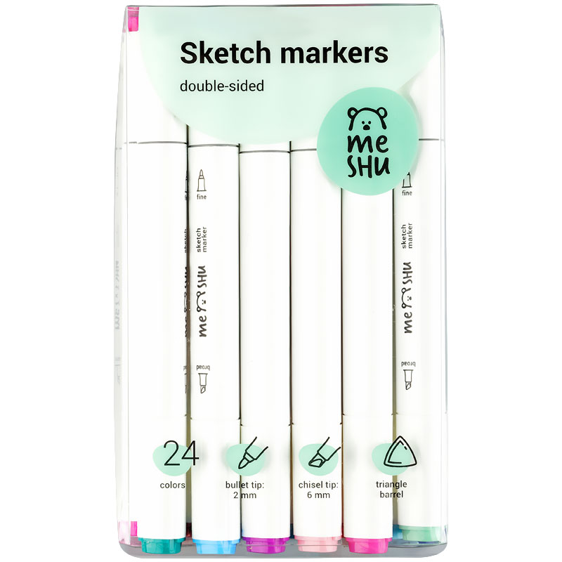 Набор двусторонних маркеров для скетчинга Meshu - идеальный выбор для художников, дизайнеров, иллюстраторов и любителей скетчинга, подходят для создания анимэ и манги.