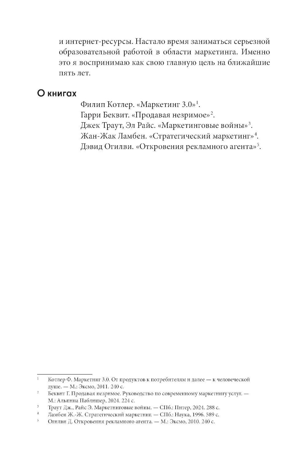 Маркетинг - это не просто реклама. Это искусство влияния на людей. В книге «Альпина ПРО бизнес. Маркетинг» собраны реальные истории тех, кто сделал свои компании узнаваемыми, кто смог достучаться до клиентов и создать культовые бренды, завоевывать аудиторию и сделать так, чтобы о них говорили. Если вы занимаетесь бизнесом, работаете в маркетинге или просто хотите понять, как управлять вниманием людей, - эта книга поможет вам стать мастером и продвигать что угодно. Вы узнаете, как создавать запоминающиеся рекламные кампании, разберетесь, почему одни бренды остаются в памяти, а другие исчезают, поймете, какие ошибки убивают маркетинг и как их избежать. Вы узнаете, как, используя всего одно необычное предложение, можно привлечь толпы клиентов, почему большие корпорации готовы платить миллионы за правильную упаковку продукта и как маленькие маркетинговые изменения могут привести к глобальному росту продаж. Эта книга для вас, если вы хотите, чтобы о вашем бизнесе заговорили, чтобы его запомнили и полюбили.| Издательство | Альпина ПРО |