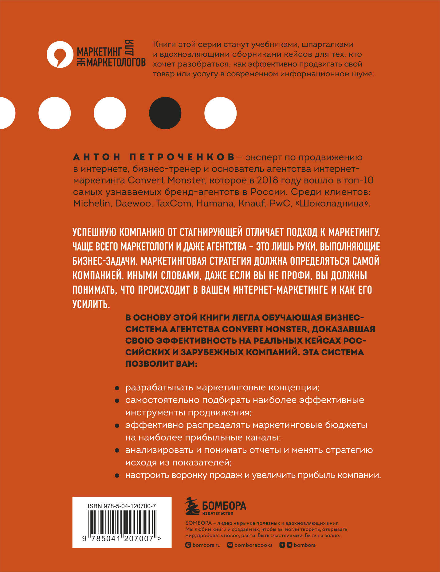 Антон Петроченков - эксперт по продвижению в интернете, бизнес-тренер и основатель агентства интернет-маркетинга Convert Monster, которое в 2018 году вошло в Топ-10 самых узнаваемых брендов-агентств в России. Среди клиентов: Michelin, Daewoo, TaxCom, Humana, Knauf, PwC, «Шоколадница». Успешную компанию от стагнирующей отличает подход к маркетингу. Чаще всего маркетологи и даже агентства - это лишь руки, выполняющие бизнес-задачи. Маркетинговая стратегия должна определяться самой компанией. Иными словами, даже если вы не профи, вы должны понимать, что происходит в вашем интернет-маркетинге и как его усилить. В основу этой книги легла обучающая бизнес-система агентства Convert Monster, доказавшая свою эффективность на реальных кейсах российских и зарубежных компаний. Эта система позволит вам: • придумывать работающие маркетинговые концепции; • самостоятельно разобраться в том, что работает, а что - нет; • перестать сливать деньги на неэффективные инструменты и каналы; • анализировать и понимать отчеты и менять стратегию исходя из показателей; • настроить воронку продаж и увеличить прибыль компании.| Издательство | Эксмо |