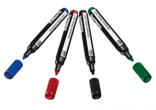 Универсальный маркер. Предназначен для работы по металлу, стеклу и другими поверхностям. Коническая ручка F, ширина линии 1,5 мм, водостойкие чернила.
