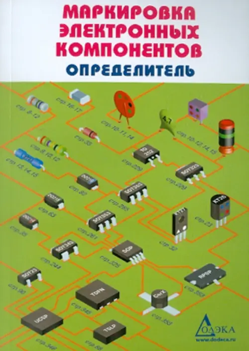Книга представляет собой справочник-определитель электронных компонентов по их внешнему виду. Пользуясь данным справочником, можно расшифровать кодовую или цветовую маркировку большинства пассивных (резисторы, конденсаторы, катушки индуктивности) и активных (дискретные компоненты и микросхемы) электронных компонентов отечественного и импортного производства. Справочные материалы приведены в графической и табличной форме. Поиск в определителе осуществляется по типу корпуса компонента, а далее по типу маркировки: цветовой или кодовой. Справочник содержит более 15000 кодовых маркировок активных компонентов: диодов, динисторов, стабилитронов, биполярных и полевых транзисторов, ключей, усилителей, компараторов, цифровых потенциометров, цифроаналоговых и аналого-цифровых преобразователей, вентилей и т. п. в корпусах для поверхностного монтажа, включая такие корпуса, как SOD, SOT, MSOP, TQFN, UCSR На все компоненты приводится справочная информация о функциональном назначении приборов, фирме-производителе, основных характеристиках и особенностях, а также цоколевке выводов. В отдельных главах приведены подробные сведения по цветовой и кодовой маркировке отечественных компонентов в корпусах типа КТ-26 и КТ-27. В главах, посвященным пассивным компонентам, рассмотрены принципы цветовой и кодовой маркировки резисторов, конденсаторов, катушек индуктивности и других элементов по номиналу, допускам и другим параметрам, а также нестандартная маркировка компонентов некоторых ведущих фирм-производителей. Книга предназначена для широкого круга радиолюбителей и радиоинженеров. 14-е издание, стереотипное.