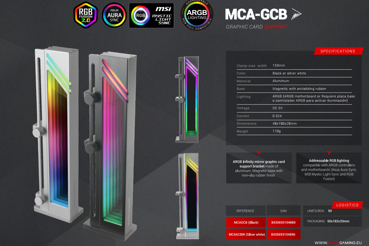 Инновационный кронштейн для поддержки графического процессора ARGB, сочетающий в себе нескользящее магнитное основание и великолепный внешний вид с подсветкой ARGB Infinity Mirror.