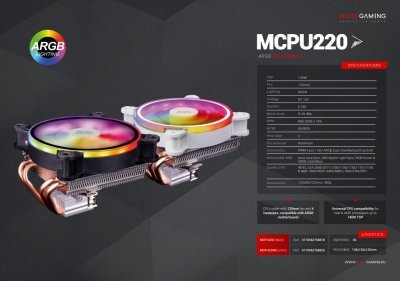 Mars Gaming MCPU220 CPU Cooler ARGB 12cm Кулер для процессора