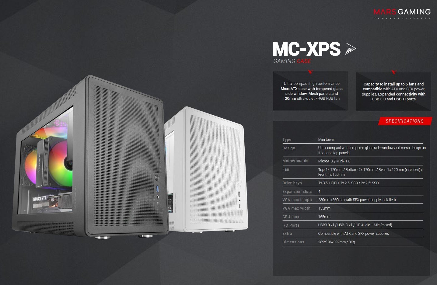 MC-XPS переопределяет концепцию компактных корпусов с ультракомпактным и портативным дизайном, созданным для игр и профессиональных установок, которым требуется максимальная производительность в минимальном пространстве. Благодаря оптимизированной технологии охлаждения MESH, предустановленному 120-мм вентилятору FRGB, боковой панели из закаленного стекла и поддержке блоков питания ATX и SFX, MC-XPS является идеальным выбором для тех, кто ищет мощность и стиль в уменьшенном формате.