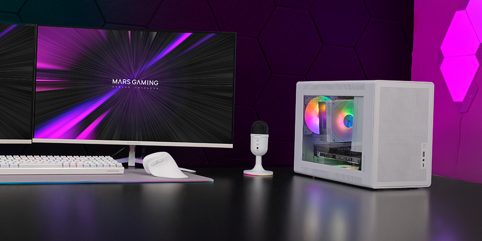 Mars Gaming MCXPSW mATX Ultra-Compact Gaming PC Case with MESH & Glass Panel
