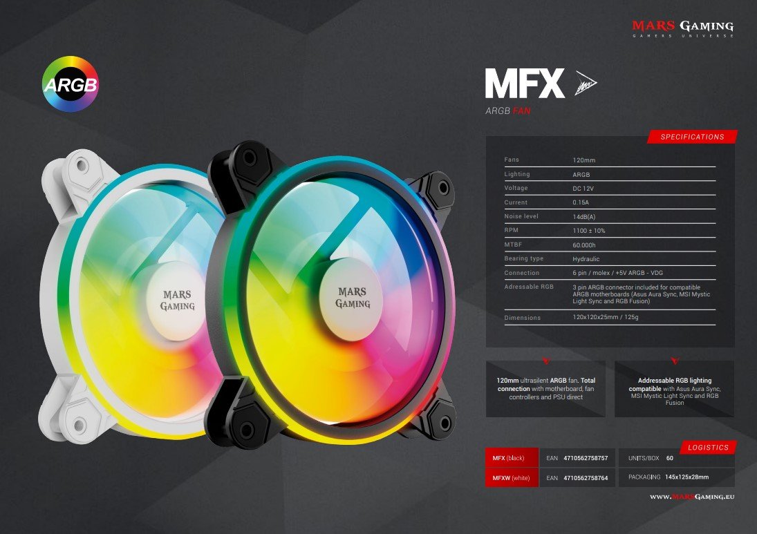 Mars Gaming MFXW ARGB 12cm Кулер для компьютера