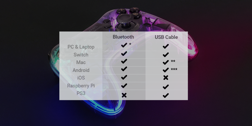 Совместимость: Switch, ПК, Mac, Android, iOS 13.0 или выше, Raspberry Pi, PS3 (кабель)
