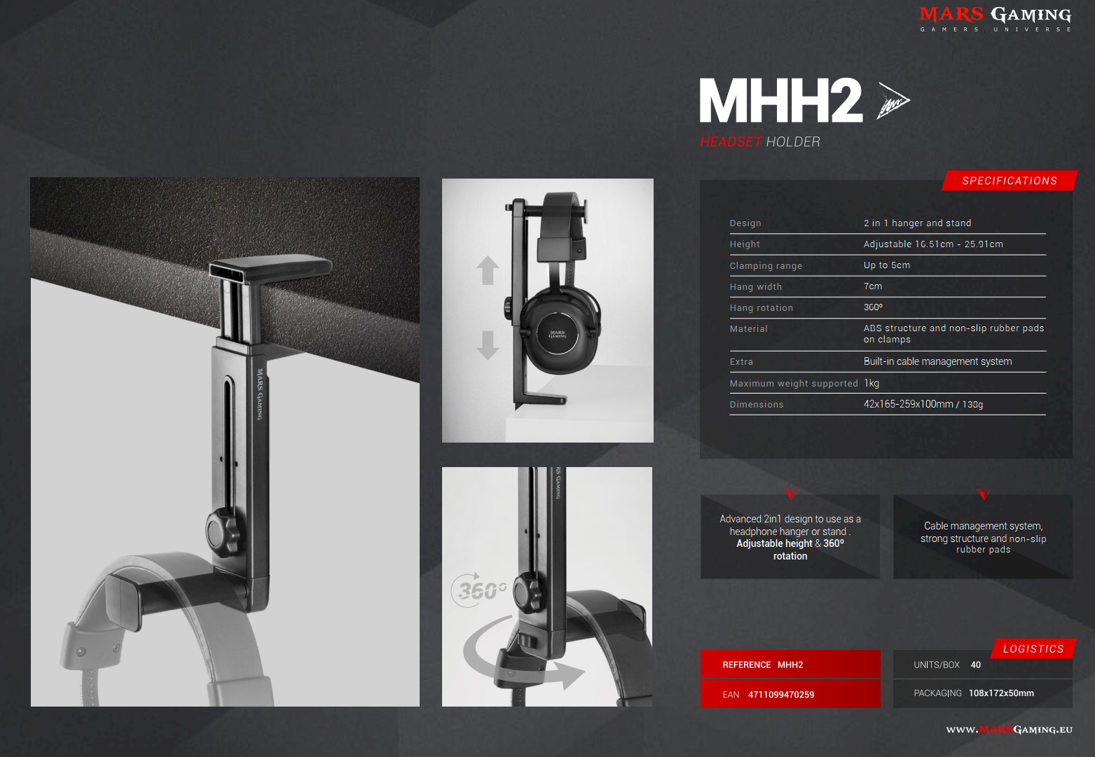 Mars Gaming MHH2 Настольный держатель для игровых наушников