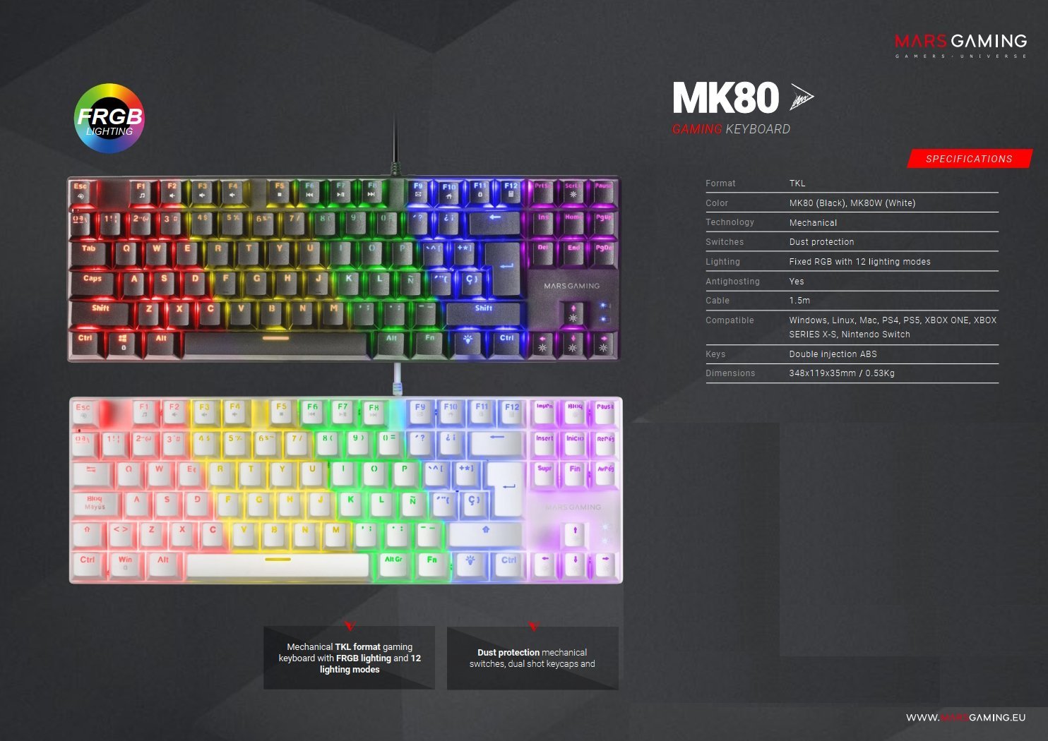 MARS GAMING MK80 игровая клавиатура FRGB c коричневыми механическими переключателями.