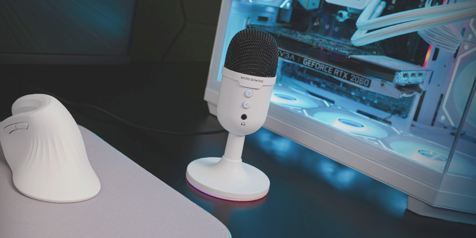 Mars Gaming MMICCXW High Definition ENC Настольный кардиоидный микрофон USB / ARGB