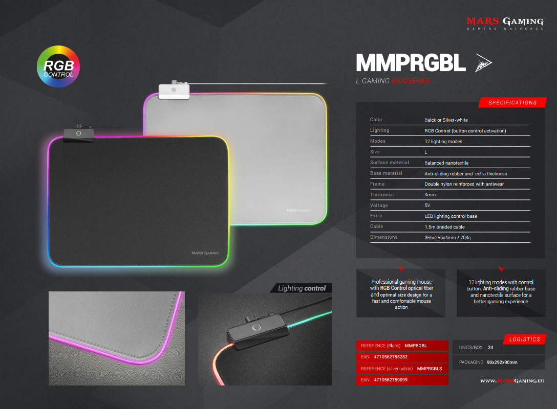 Mars Gaming MMPRGBL RGB Игровой коврик для мыши 365 x 265 mm