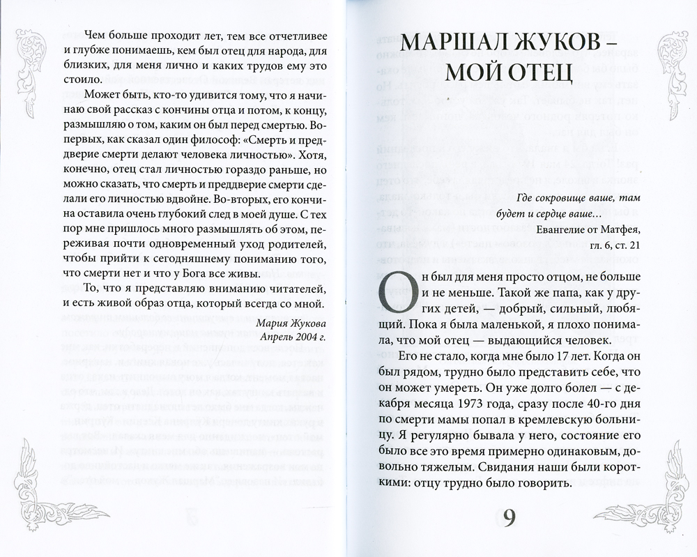 Воспоминания младшей дочери маршала Г. К. Жукова Марии Георгиевны Жуковой, члена Союза писателей России, рисуют живой образ непобедимого полководца, сумевшего в безбожные времена сохранить сердце православного христианина. Эта книга написана простым языком и предназначена для широкого круга читателей.