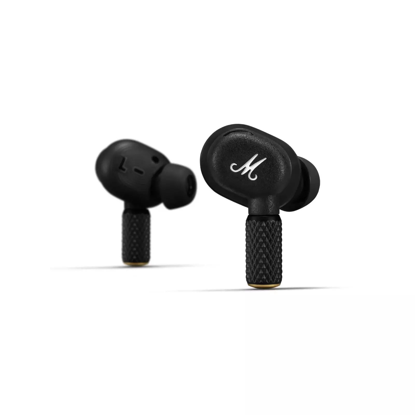 Компактные True Wireless наушники Marshall Motif II A.N.C. сочетают фирменный стиль Marshall с современными технологиями. Они обеспечивают мощный звук с глубокой детализацией, удобство использования и до 30 часов воспроизведения с включённым активным шумоподавлением (ANC) и до 43 часов без него. Поддержка Bluetooth LE Audio гарантирует стабильное подключение и качественный звук. Через приложение Marshall можно настроить эквалайзер, включить режим прозрачности и обновлять прошивку. Наушники лёгкие, с удобной посадкой, устойчивы к износу, а зарядный кейс поддерживает быструю и беспроводную зарядку.
