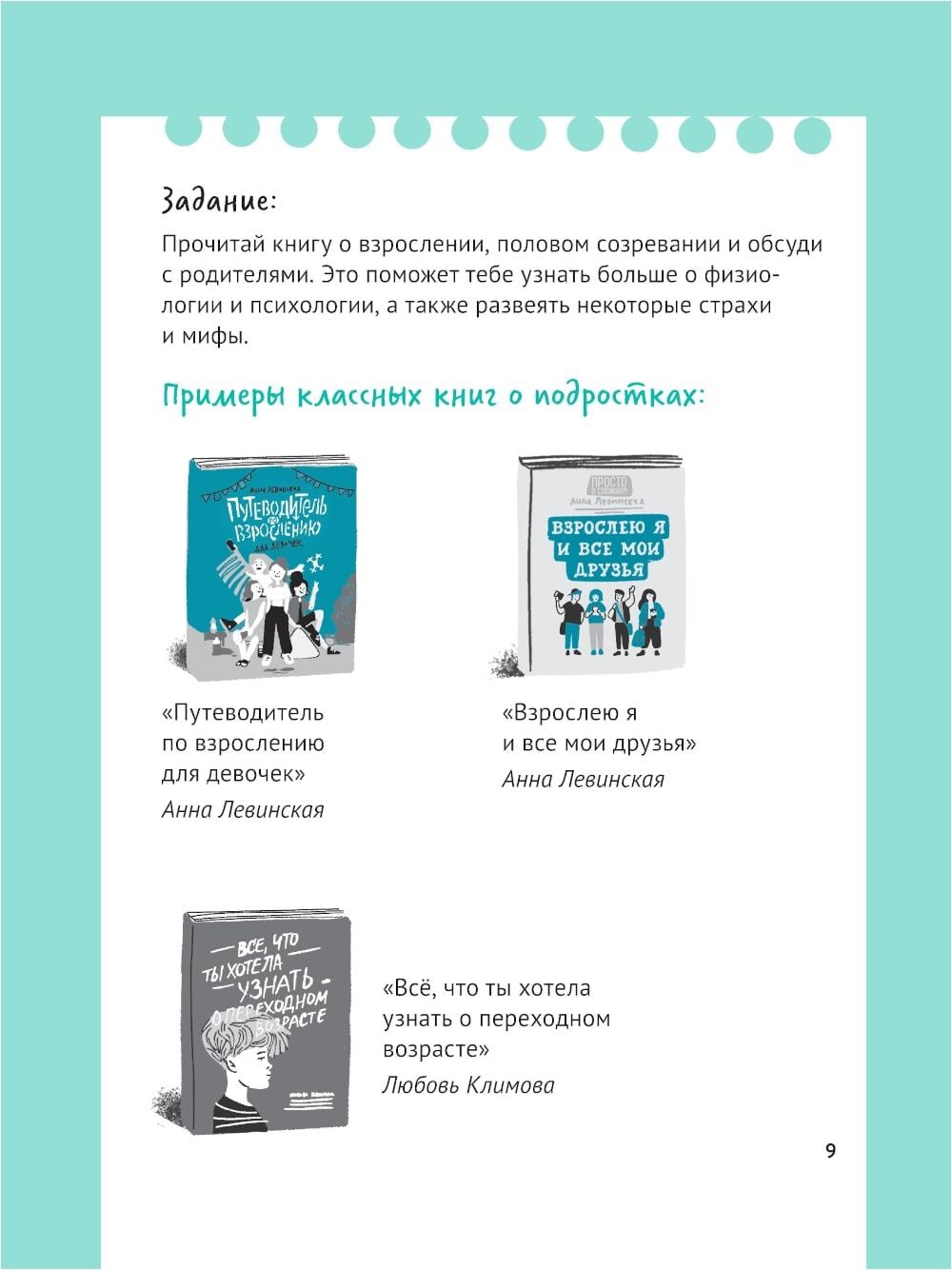 Эта книга - интерактивное дополнение к пособию Анны Левинской «Путеводитель по взрослению для девочек». Она поможет лучше понять изменения в теле и чувствах, научит заботиться о себе, выстраивать отношения, соблюдать границы и быть уверенной в себе. Заполняй, отмечай, размышляй, задавай вопросы - и шаг за шагом строй свой маршрут взросления.| Издательство | Феникс |