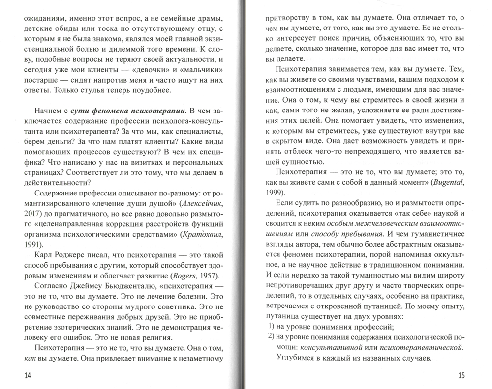 Эта книга - своего рода путеводитель, помогающий психологам и психотерапевтам сориентироваться в профессии. В ней автор отвечает на прикладные вопросы о начале практики; рассказывает об общей (интегративной) модели психотерапии; о широких возможностях интегративного подхода в работе психолога и психотерапевта; о том, как совместить разные подходы и как наметить пути дальнейшего профессионального развития. Книга предназначена для студентов психологических и психотерапевтических программ, но будет полезна и опытным психологам, коучам и психотерапевтам, социальным педагогам и консультантам, а также всем тем, кто интересуется психологией и психотерапией.| Издательство | Генезис |