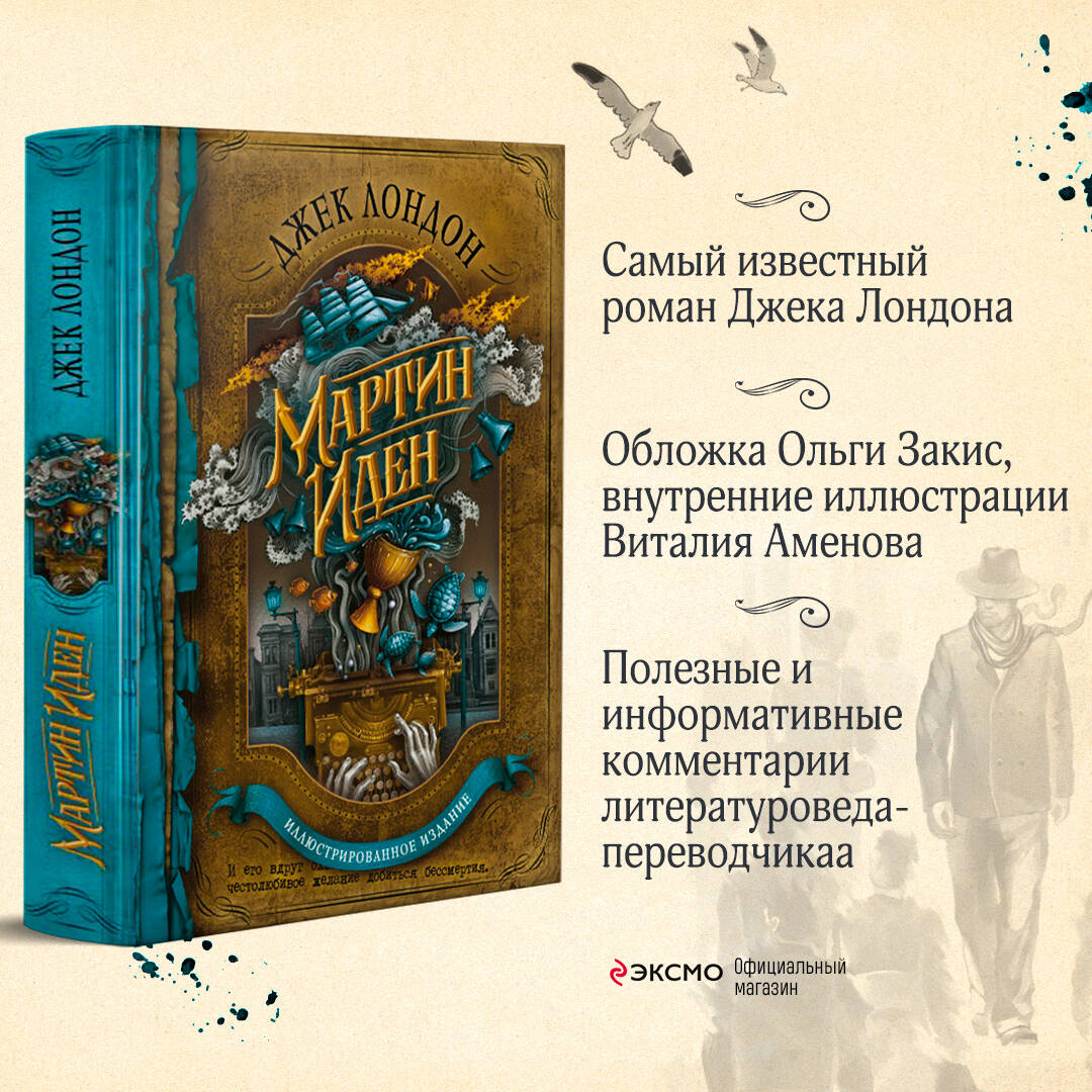 Выдающийся роман Джека Лондона о сильном мужчине, который смог достичь своей цели. Но какой ценой?.. Мартин Иден - простой моряк, человек из низов. Он проходит через тяжелые испытания и благодаря упорному труду и необъятной энергии превосходит своих учителей и меняет свою жизнь. Творческий дар становится пропуском Мартину Идену в высший свет. Отныне две цели неотступно стоят перед ним: слава писателя и обладание любимой женщиной. Только мечты непредсказуемы и коварны: неизвестно, когда они сбудутся и принесет ли это долгожданную радость. Это самое известное произведение Джека Лондона, оно о поиске места в жизни, муках творчества и муках любви, во многом автобиографичное. Произведение показывает, как человек с силой воли и упорством может многого достичь. Помогает быть сильным в любой ситуации, учит отстаивать свою позицию. Побуждает любить жизнь во всех ее мельчайших проявлениях и жадно хвататься за каждый ее миг. Великолепное подарочное издание со специально отрисованной для этого издания обложкой известной художницы Ольги Закис, и иллюстрациями Виталия Аменова внутри! Издание сопровождается комментариями литературоведа-переводчика к роману.| Издательство | ООО "Издательство "Эксмо" |
