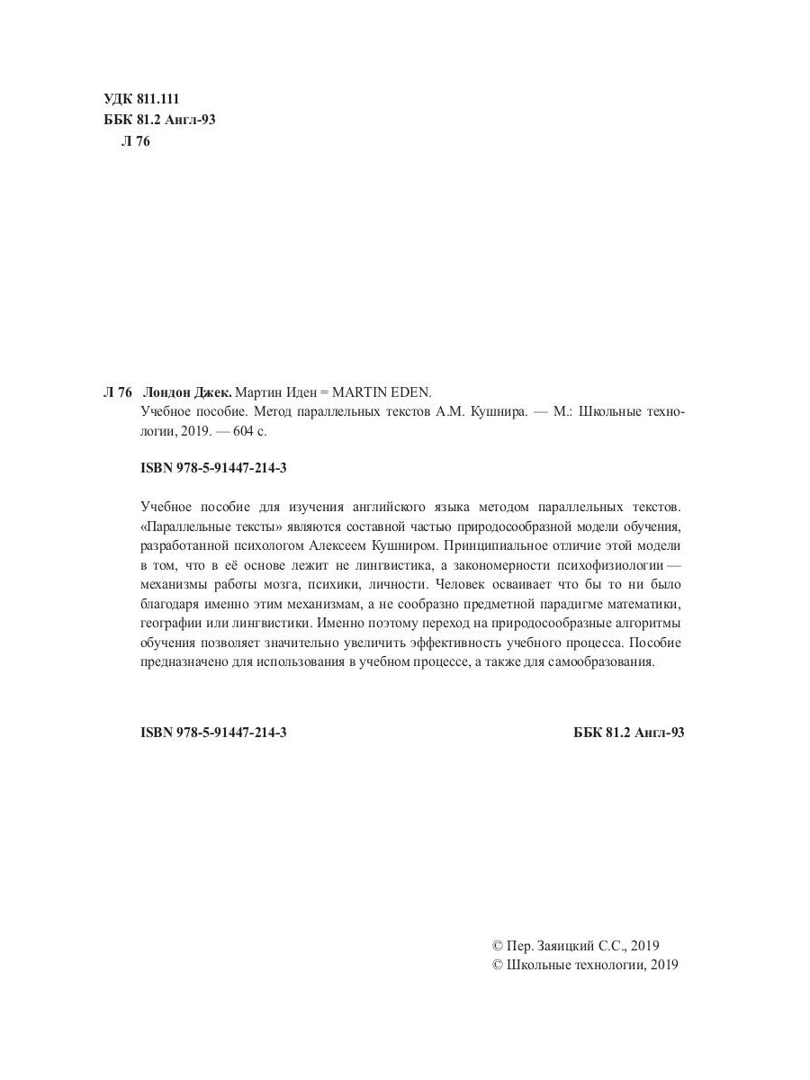 Аннотация: Мартин Иден: Учебное пособие. Метод параллельных текстов А. Кушнира